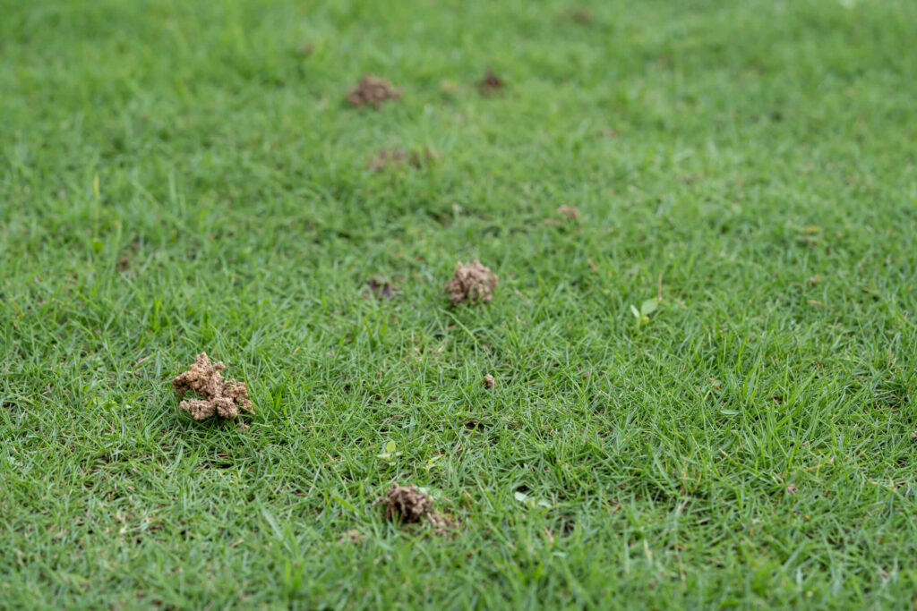 Gliste se nam za obilico hrane zahvalijo s kupčki izrite prsti, polne hranil. Ker ti kupčki motijo lep videz trate, jih moramo čim prej odstraniti, bolje rečeno, pomesti s sirkovo metlo ali z mehkimi vzmetnimi grabljami. Tako bomo preprečili, da jih med hojo po trati ali morebitno zadnjo košnjo ne bomo poteptali in s tem onemogočili rast trav.