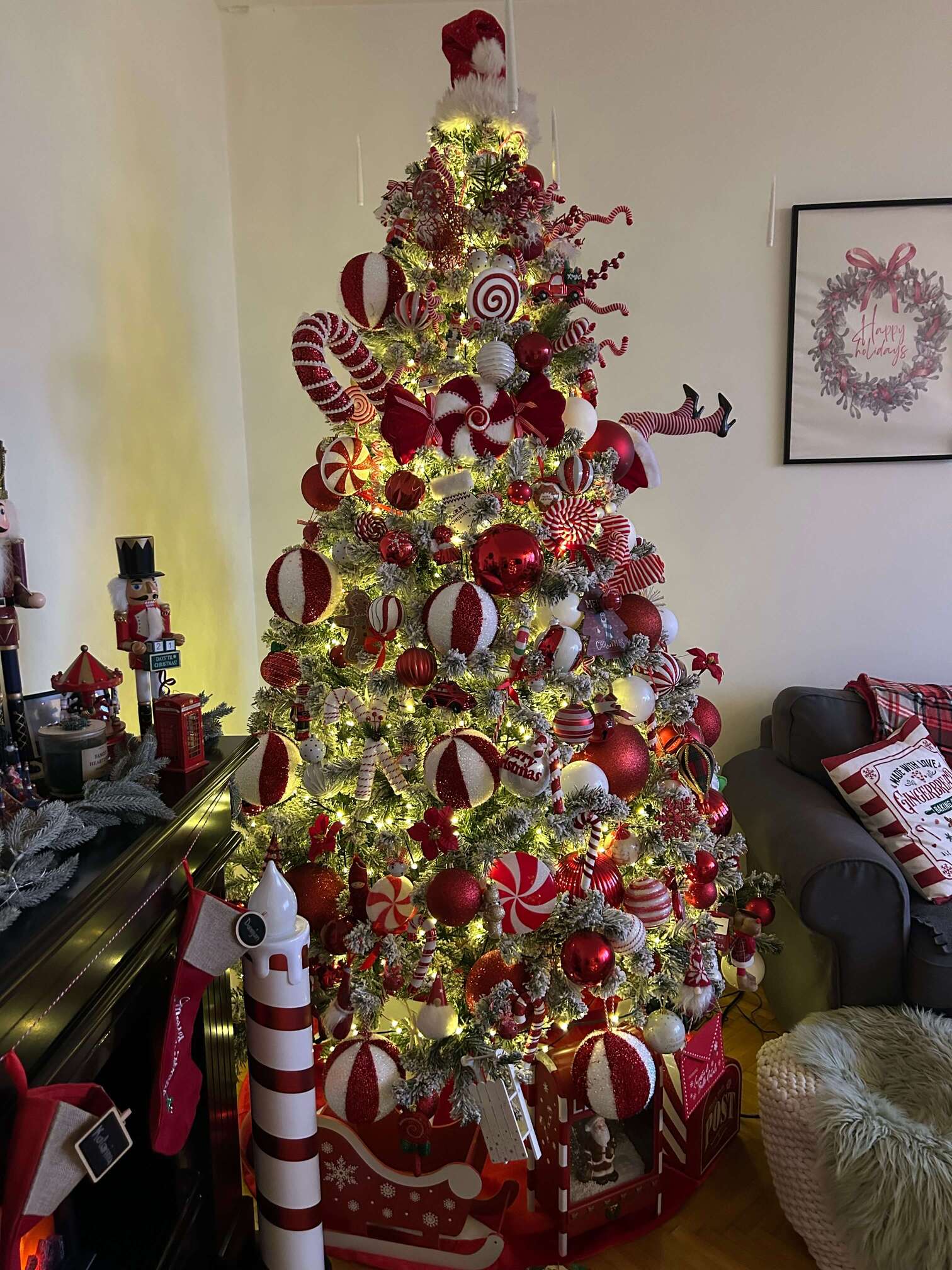 Okrasitev, ki jo vsako leto ustvari Katarina, je preplet navdiha s spleta, drobcev tradicije in predvsem njenih lastnih zamisli. Kot pravi, ji je najljubše, da dom zasije v rdeče-beli barvni shemi, ki jo ohranja vsako leto.
