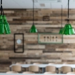 V jedilnici, rezervirani za zaposlene, sta dve steni oblečeni v deščice lesenih palet, ki so patino pridobivale več let. Elegantna svetila so pravzaprav pivske steklenice z odrezanim dnom, steno pa krasi tisti prvi ‘trash’ navidh, pribor: uokvirjene žlice, noži, vilice in krožniki.