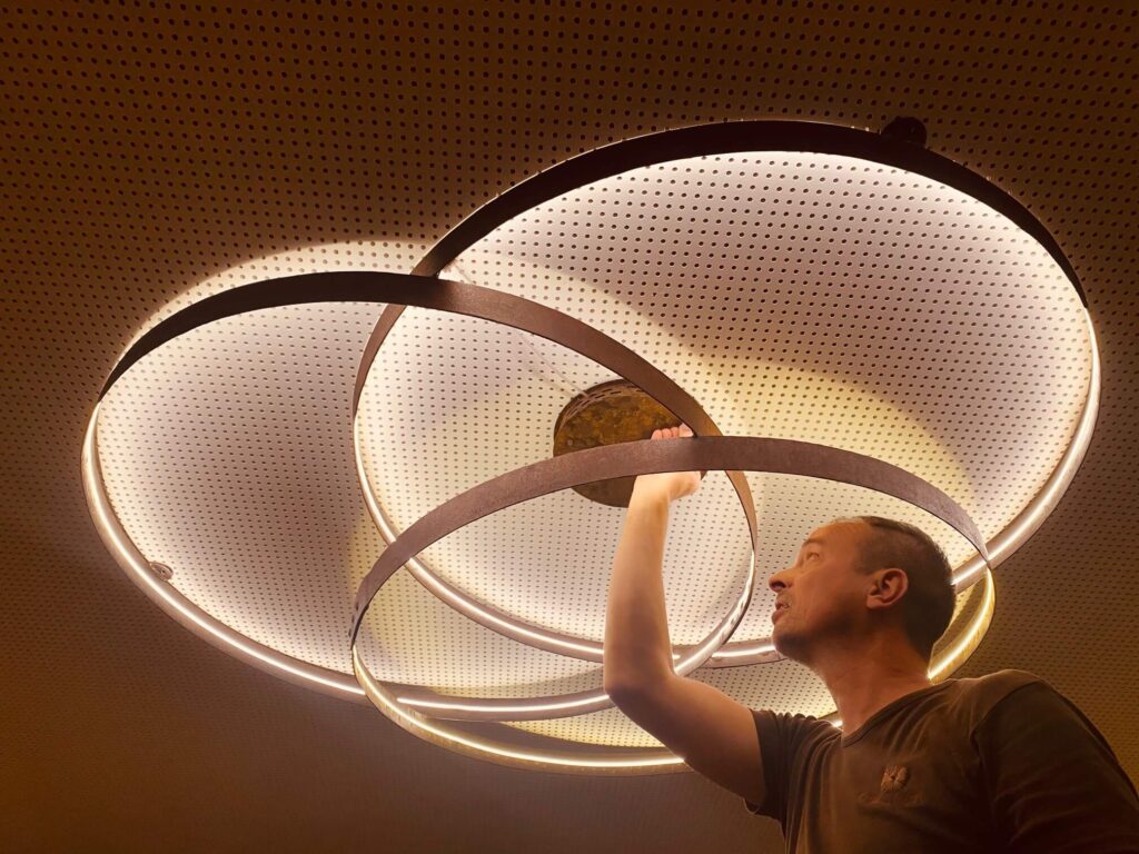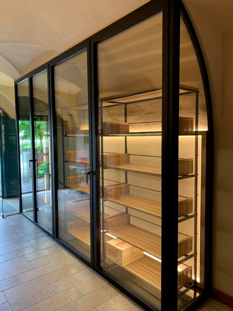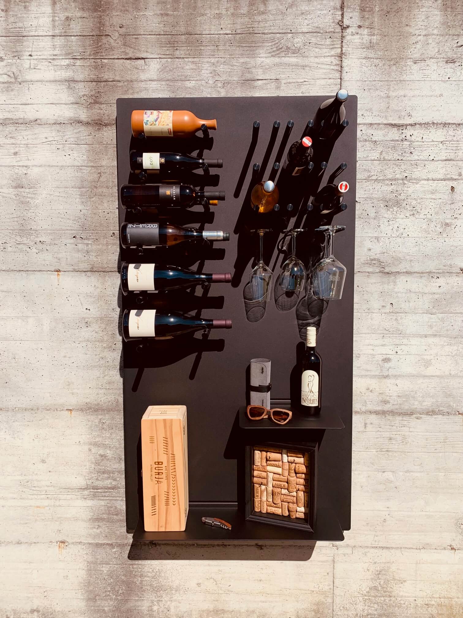 Na sejmu Ambient se je znamka predstavila z lebdečo vinsko steno, ki je celovit rezultat razvoja izdelkov v preteklih letih ‒ od nosilcev steklenic iz dog, različne razsvetljave, izdelkov iz furnirja preše in sodov. Vsega, kar je Aleša pripeljalo do koncepta vinskih regalov in posledično do lebdeče vinske stene. Kot pove ustvarjalec, gre za edinstven in dobro premišljen koncept, ki bo na voljo v treh velikostih z različnimi možnostmi postavitve različnih elementov: »Opazil sem, da vinogradniki in ljudje, ki obožujejo vina, ter druga kulinarična branža potrebujejo nekaj novega, izvirnega in lepšega, kjer bodo predstavljali in shranjevali svoja vina in kulinariko. V ta koncept lebdeče vinske stene sem vkomponiral več elementov. Najprej, občutek lebdenja nam daje 40 milimetrov distance od stene in indirektna LED-razsvetljava izza stene. Nastavki, izdelani iz struženega aluminija in eloksirani, so posebej ergonomsko oblikovani, tako da se skupaj s tesnili dobro prilegajo vinskim steklenicam. Modeli nastavkov so prilagojeni klasičnim steklenicam prostornine 0,75 l in posebej zasnovani za magnum steklenice prostornine 1,5 l. Celotna konstrukcija stene je prav tako narejena iz aluminija in je prašno lakirana.«