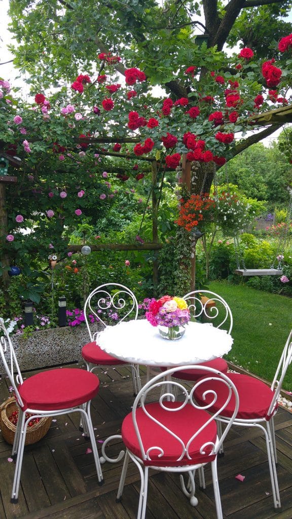 Na vrtu v Budanjah v Vipavski dolini so številne dišeče vrtnice v družbi mnogih trajnic in okrasnih grmov ter drevesc. Vrt ni velik, zato ima lastnica vselej škarje v roki in z rezjo prilagaja velikost rastlin prostoru na vrtu. Ima zelene prste, kar se pozna tudi pri številu sadik, ki jih podarja znancem, prav tako pa zna oblikovati čudovite šopke iz cvetja in listja na svojem vrtu.