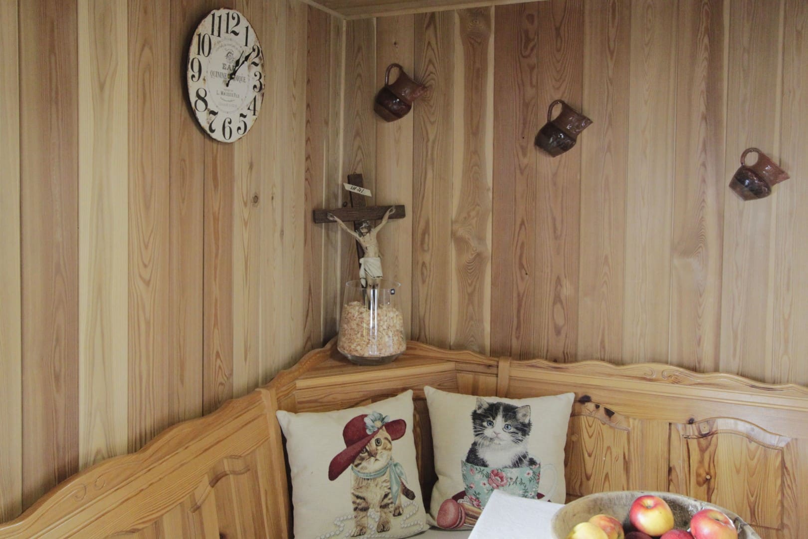 V hiši so že imeli masivno pohištvo, ki bi ga bilo škoda zavreči, zato so ga ohranili tudi po obnovi stavbe. »Dotrajana je bila le kuhinja, zato smo zanjo izbrali novo pohištvo v podeželskem slogu,« razlaga Vida in dodaja, da so v kotu ohranili tudi leseno klopco in tja dodali križ, saj je bila to značilnost takšnih hiš v preteklosti.