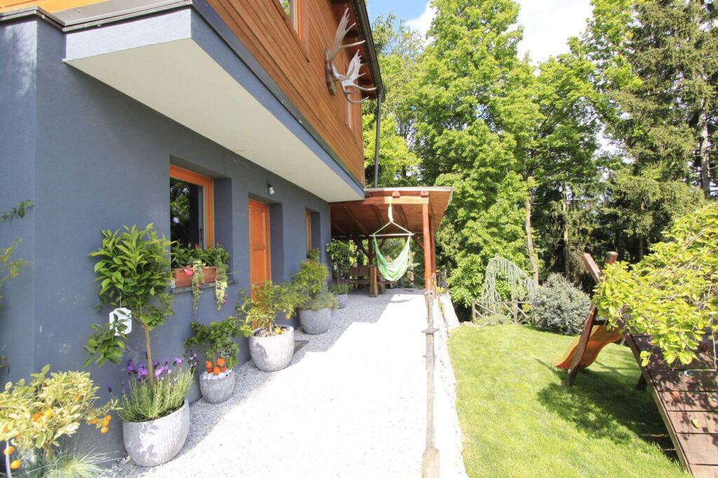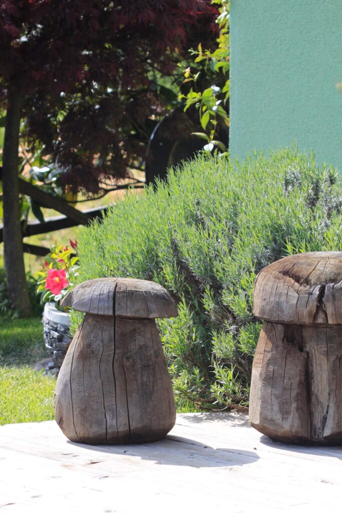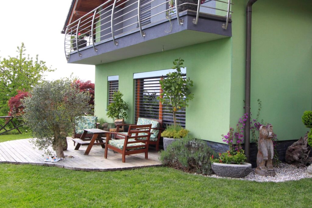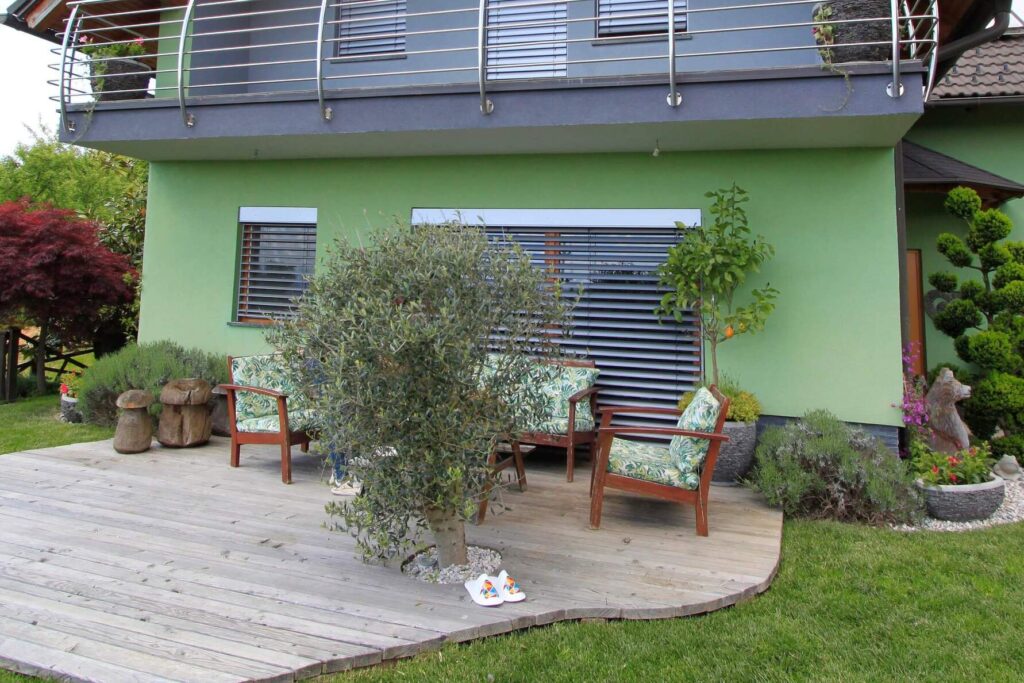 Balkone in okolico bogatijo ročno izdelani okrasni lonci, ki vnašajo harmonijo v prostor. Svoje mesto ob letni kuhinji imajo tudi citrusi – limone, kumkvati in mandarine – plodove pa družina uporablja za čaje in limonade skozi vse leto. »Čez zimo jih pustim zunaj, zaščitim jih le s kopreno,« pojasni Miha.