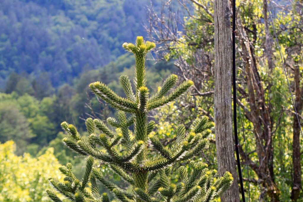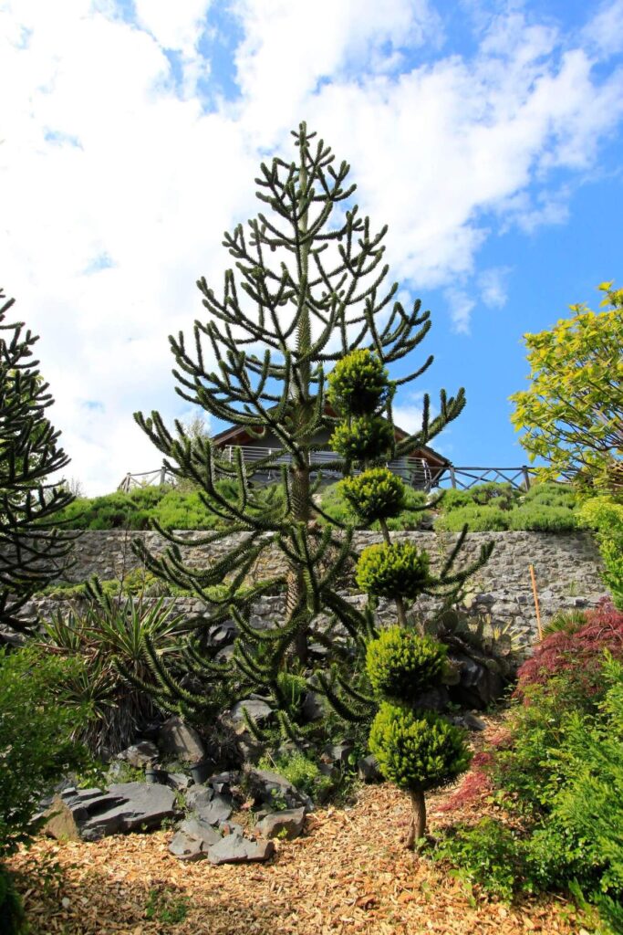 Park pod hišo je prava zakladnica najrazličnejših rastlin, ki jih je zbiral dobri dve desetletji, prinesel pa jih je iz Evrope, Avstralije, Južne in Severne Amerike. »Tu je več kot 500 iglavcev, vključno z ameriškim črnim borom (Pinus jeffreyi), katerega storži lahko tehtajo do tri kilograme in zrastejo do pol metra, ter kanadsko čugo z najmanjšimi storžki, velikimi le pet do osem milimetrov,« pravi Miha. Med posebnostmi izstopa Wollemia nobilis, živi fosil, odkrit leta 1994 v Avstraliji. »V naravi raste le 39 odraslih rastlin,« razlaga Mihov sin Svit, ki ponosno deli: »Je zelo ogrožena vrsta, v našem parku pa raste že 15 let – tu imamo največji in najbolj zdrav primerek v Sloveniji.«