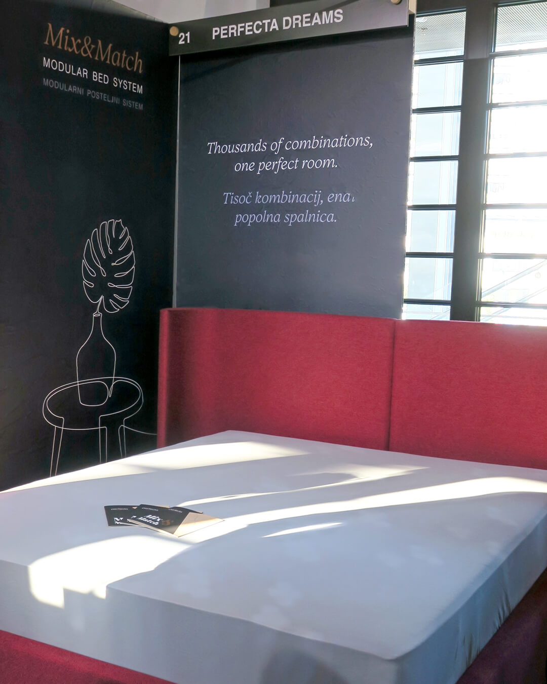 Nagrajeni sistem Mix & Match izhaja iz ideje, da mora biti postelja osebna – tako kot prostor, v katerem živimo. Namesto vnaprej določenih rešitev Perfecta Dreams uporabnikom omogoča, da si svoj idealni model postelje ustvarijo sami s kombiniranjem različnih elementov: