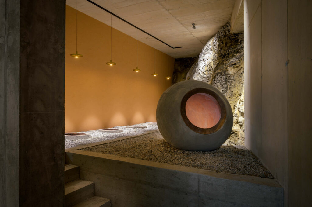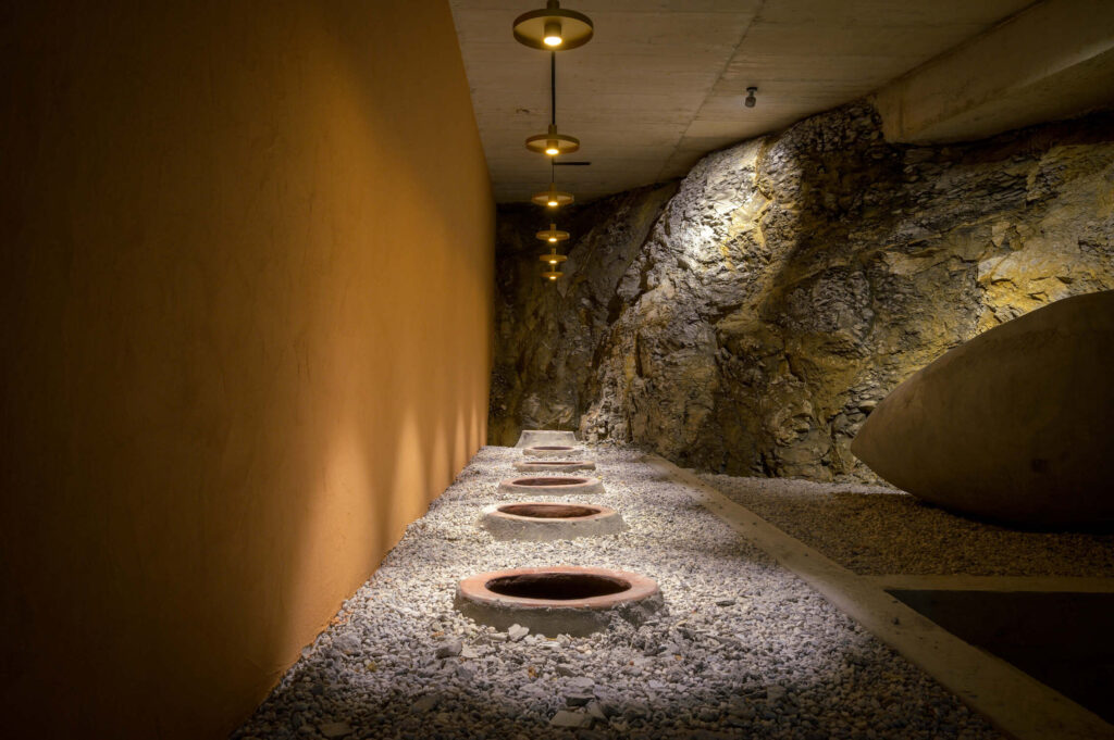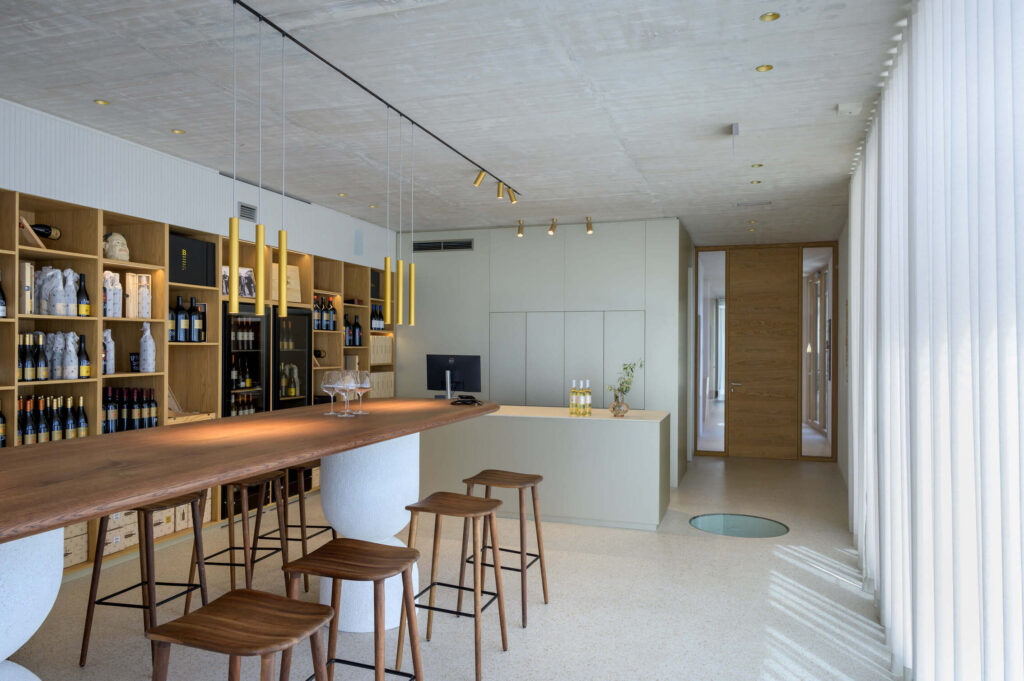 Terase niso le funkcionalni elementi, temveč pomembno narekujejo ritem samega objekta. Obiskovalca gibanje po objektu spominja na vinograde – z vsakim nivojem se mu odkrivajo novi pogledi, ambienti ter odnosi med notranjostjo in zunanjostjo. Prostorska razgibanost in različni nivoji omogočajo, da vsak obisk omogoča edinstveno izkušnjo, podobno okušanju vina, kjer se okusi razkrivajo sloj za slojem.