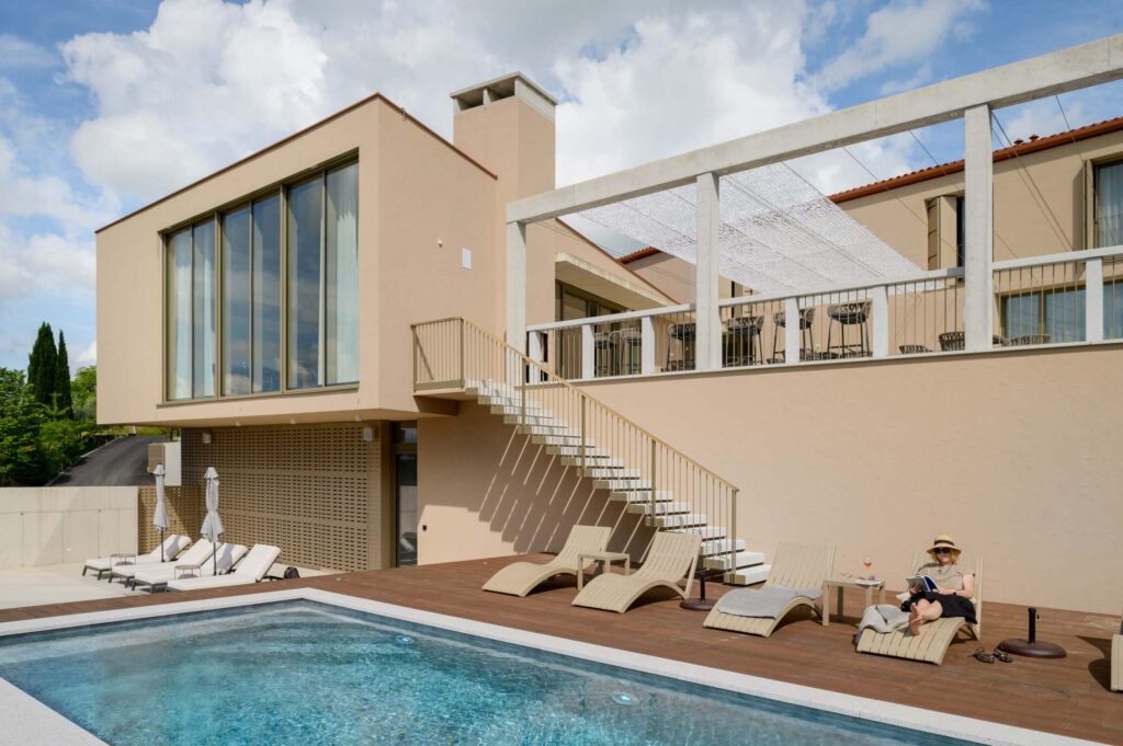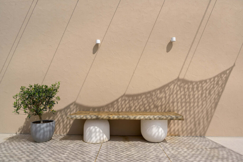 Tradicionalni materiali, kot so kamen, les in terakota, so reinterpretirani v sodobnem jeziku. Lesene obloge, kamniti zidovi in topli odtenki terakote ustvarjajo prijeten kontrast med robustnostjo in subtilno estetiko, hkrati pa v interjer vdahnejo toplino in intimnost. Meja med notranjimi in zunanjimi prostori je skoraj zabrisana; zaradi mile klime pa so številne zunanje terase in dvorišča zasnovani kot nadgradnja notranjih prostorov.