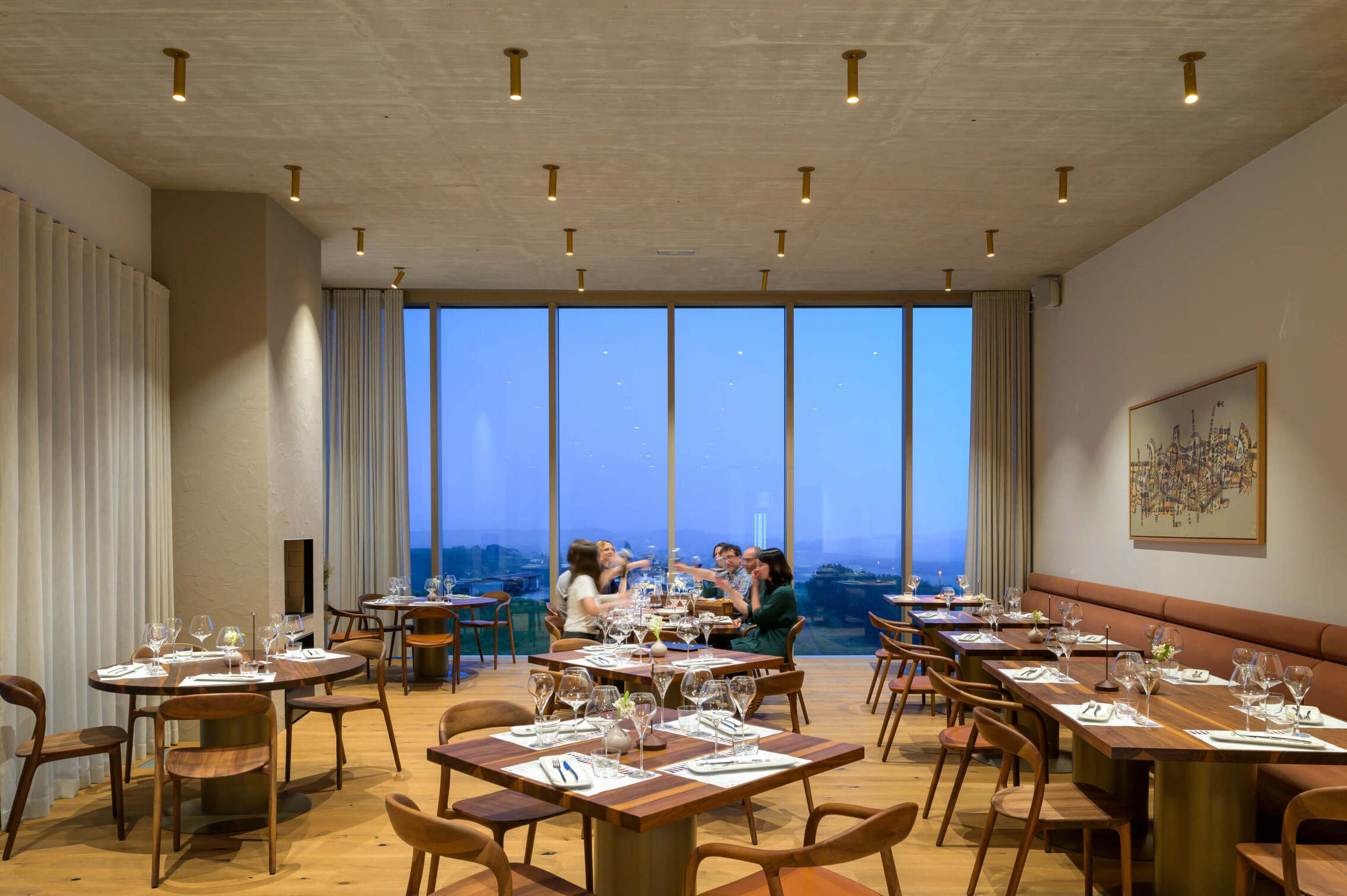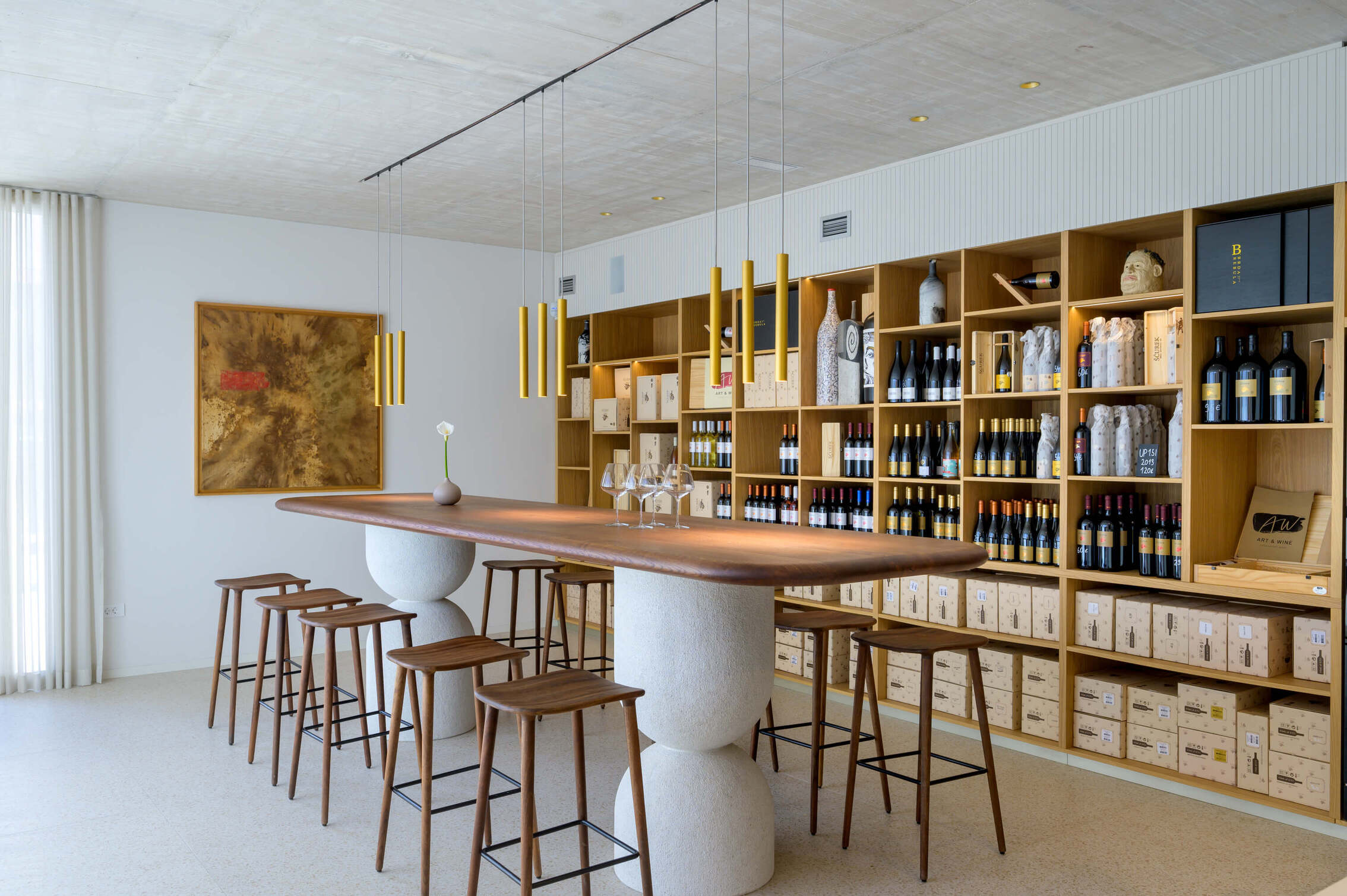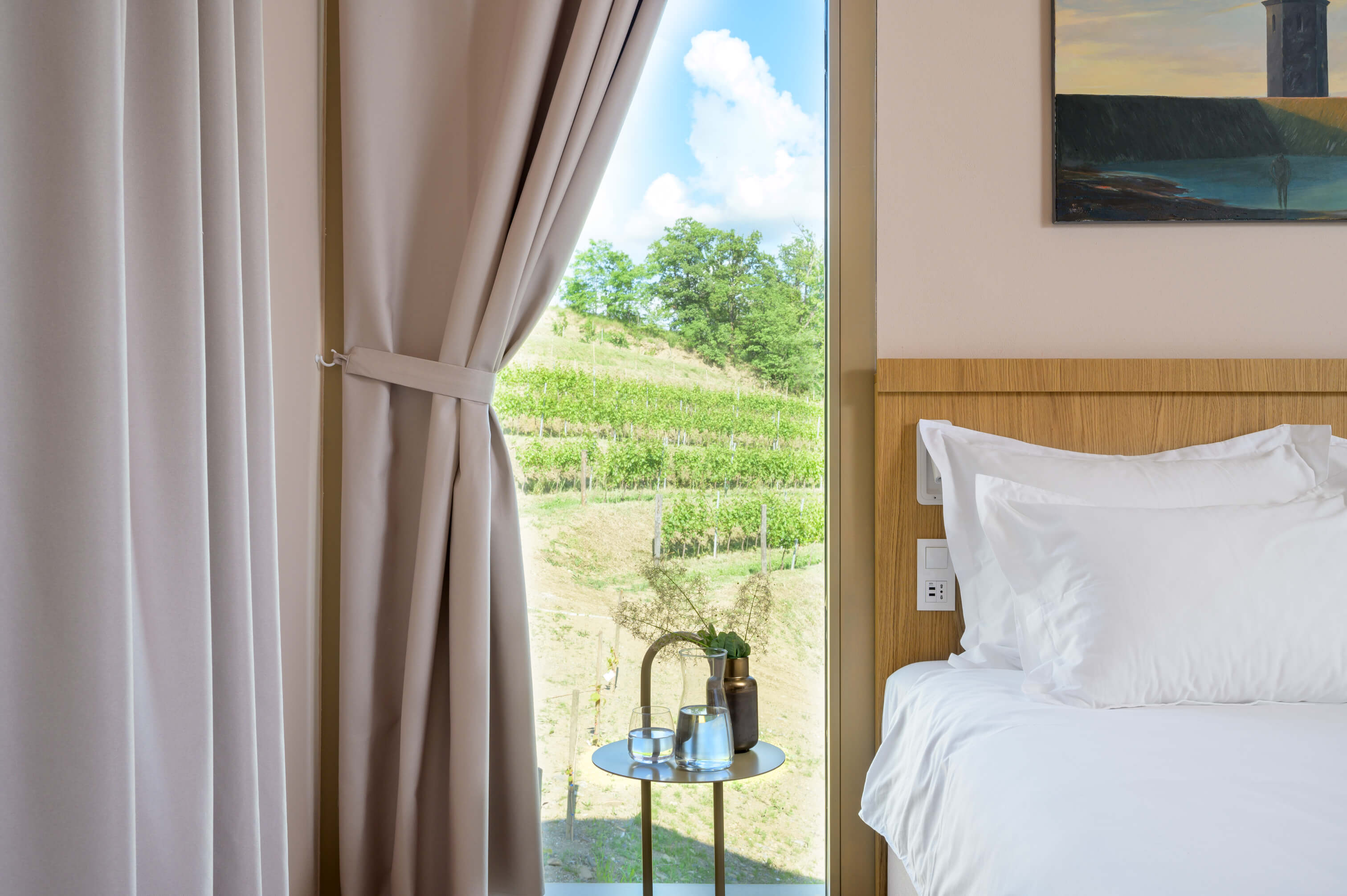 Terase niso le funkcionalni elementi, temveč pomembno narekujejo ritem samega objekta. Obiskovalca gibanje po objektu spominja na vinograde – z vsakim nivojem se mu odkrivajo novi pogledi, ambienti ter odnosi med notranjostjo in zunanjostjo. Prostorska razgibanost in različni nivoji omogočajo, da vsak obisk omogoča edinstveno izkušnjo, podobno okušanju vina, kjer se okusi razkrivajo sloj za slojem.