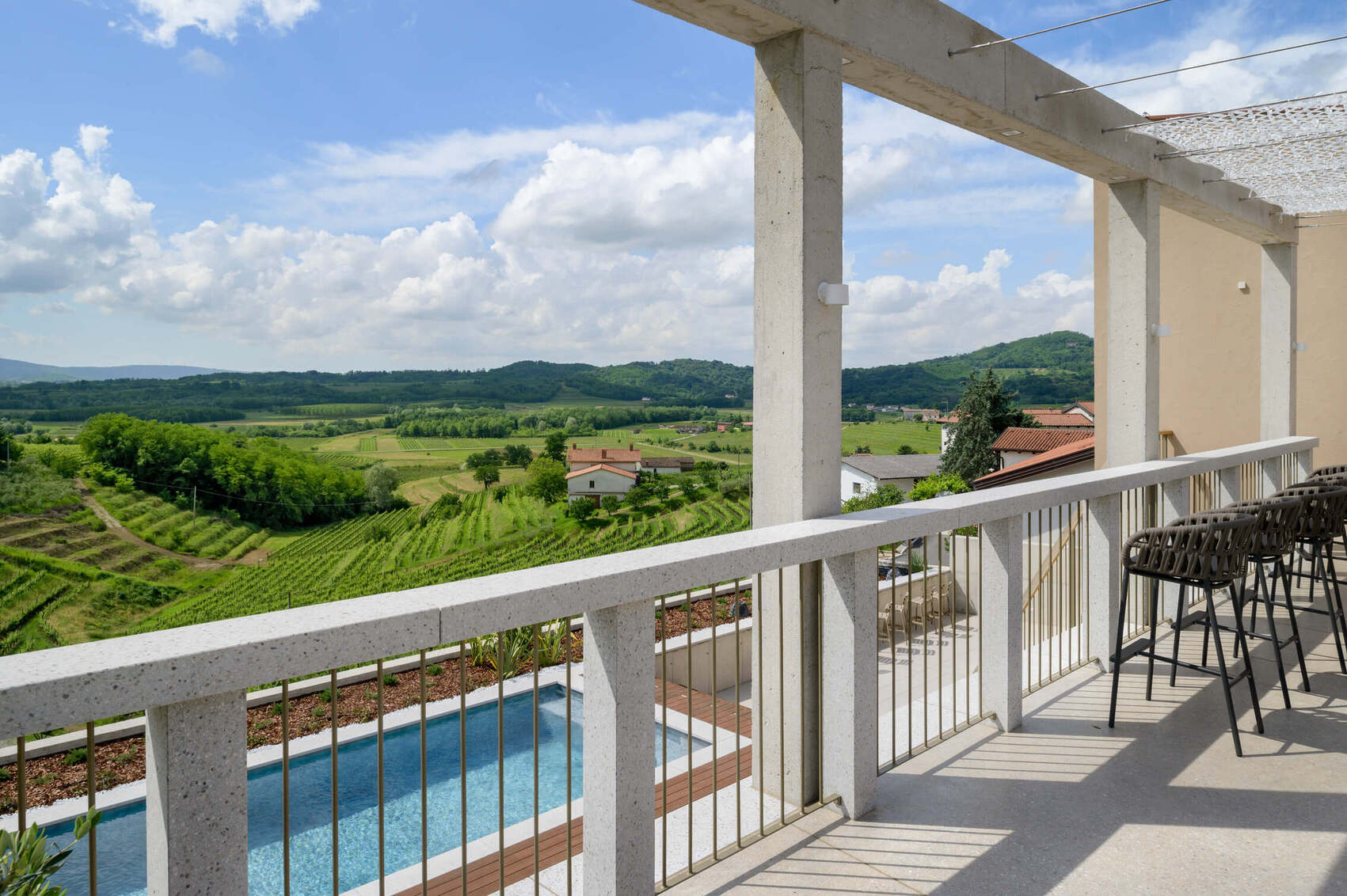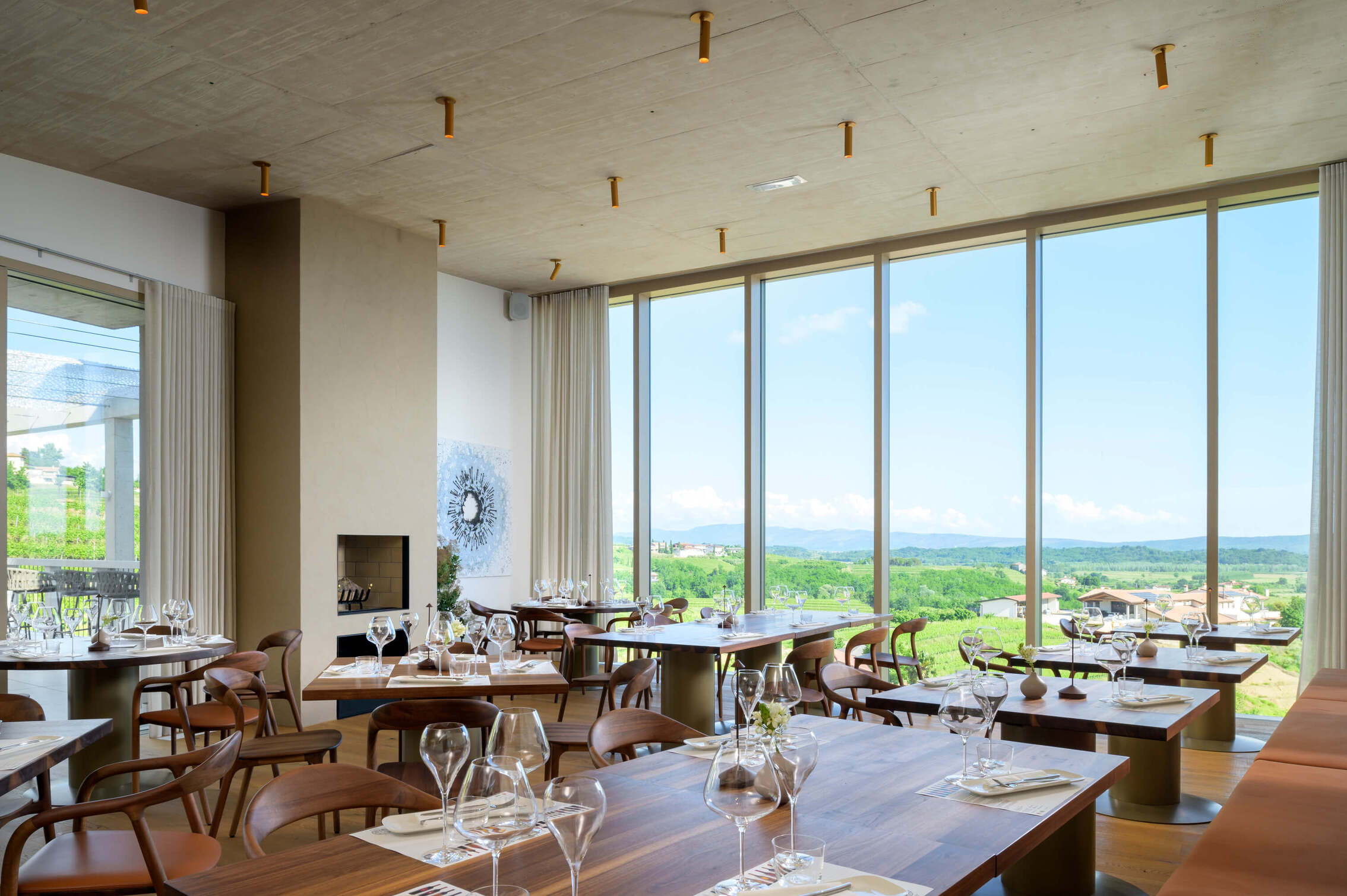 Vinska klet s spremljevalnim programom v Plešivu, v objemu Goriških brd, spretno združuje tradicionalni in sodobni arhitekturni jezik ter se organsko zlije s terasasto pokrajino v mehkem spustu proti dolini. Projekt, delo biroja Kombinat arhitekti, je tudi prejemnik prestižne nagrade BIG SEE Architecture Award za leto 2025.