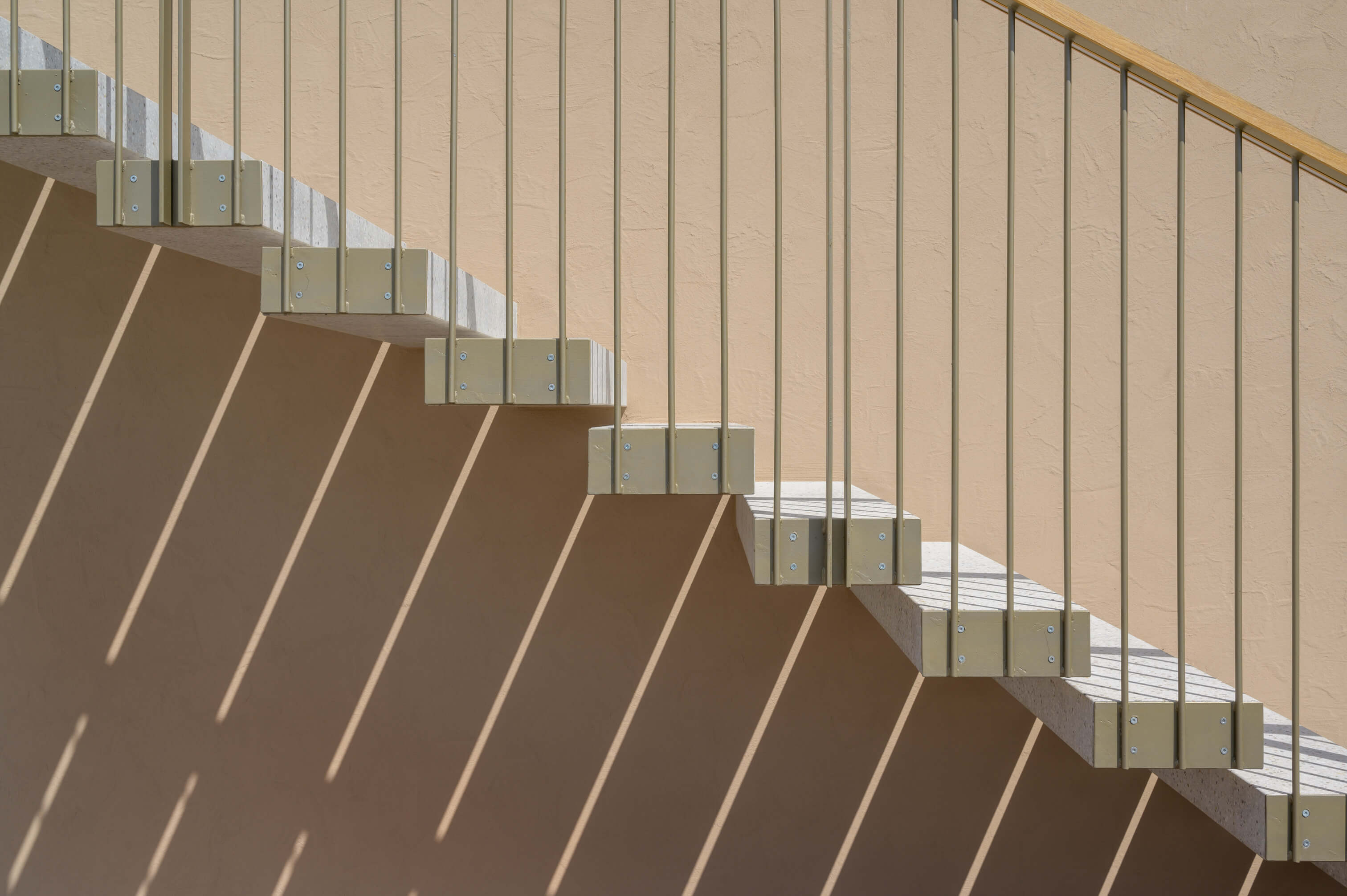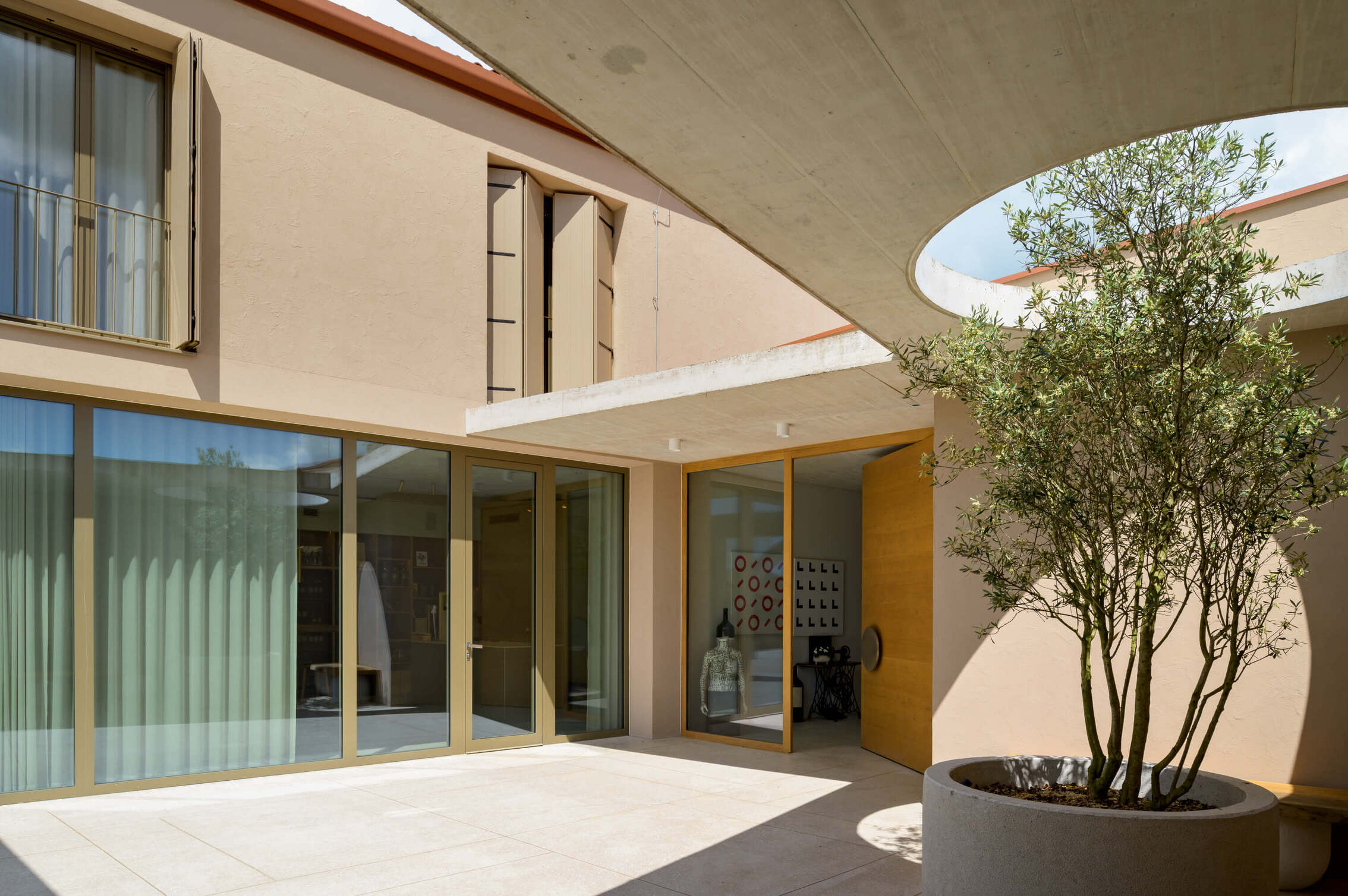 Zasnova temelji na subtilnem prepletu notranjih in zunanjih prostorov – prostori niso le zaprti, ampak so zunanji prostori zasnovani kot skoraj enakovredni bivalni volumni. Terase, dvorišča in odprti prostori se odzivajo na naklon terena in mikroklimatske pogoje: senčenje poleti, sončenje spomladi, zaščita pred vetrom v hladnejših mesecih.