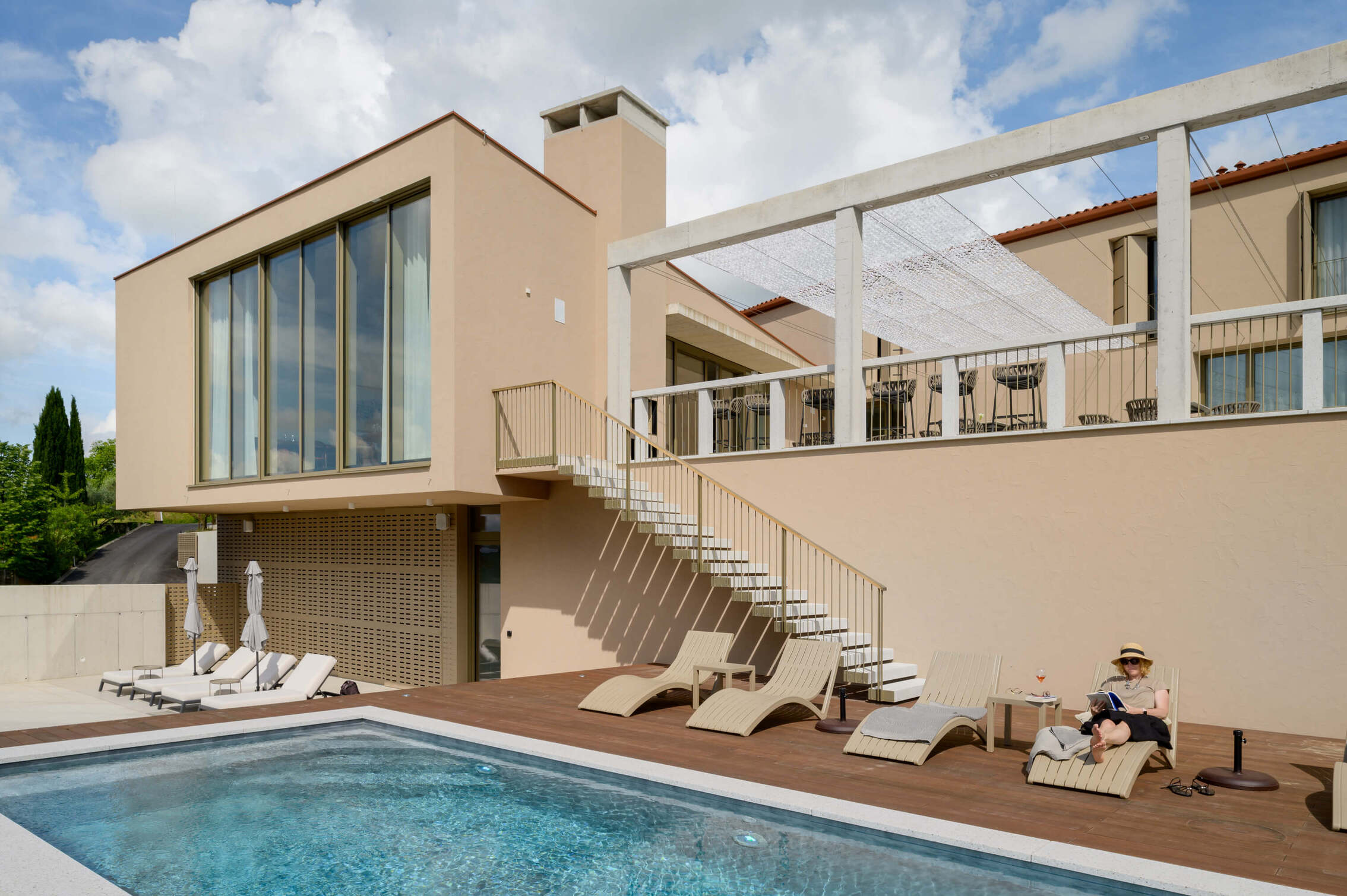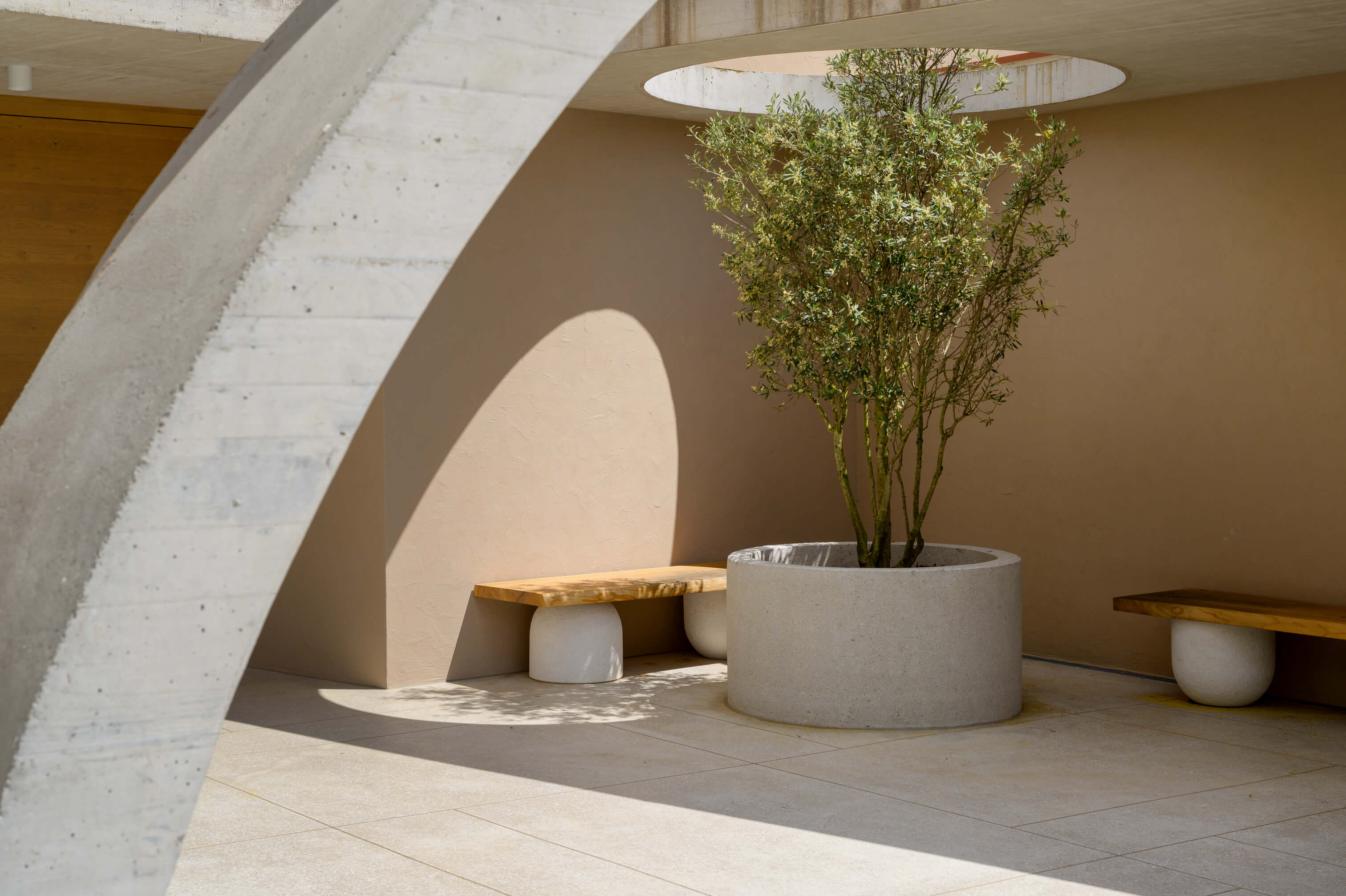 Tradicionalni materiali, kot so kamen, les in terakota, so reinterpretirani v sodobnem jeziku. Lesene obloge, kamniti zidovi in topli odtenki terakote ustvarjajo prijeten kontrast med robustnostjo in subtilno estetiko, hkrati pa v interjer vdahnejo toplino in intimnost. Meja med notranjimi in zunanjimi prostori je skoraj zabrisana; zaradi mile klime pa so številne zunanje terase in dvorišča zasnovani kot nadgradnja notranjih prostorov.