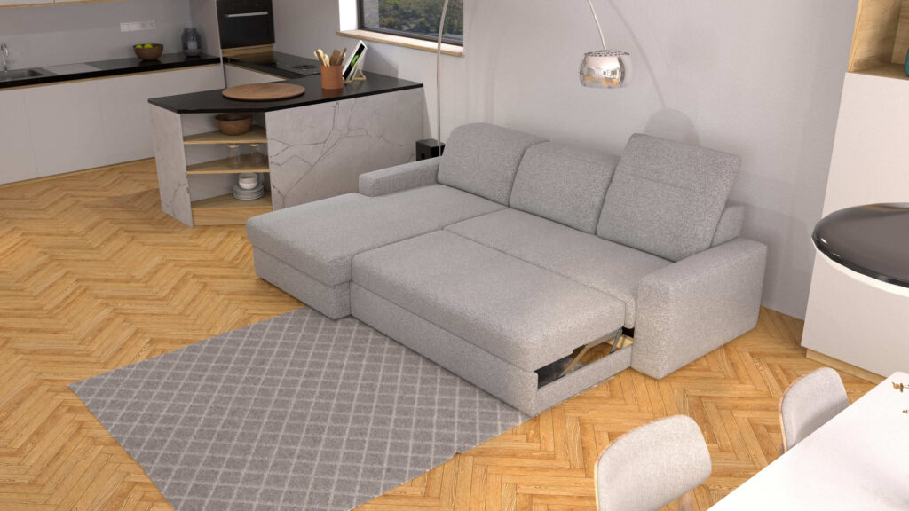- Uporabnost: Čez dan služijo kot udoben prostor za sedenje, zvečer pa se hitro in enostavno preoblikujejo v ležišče – bodisi za goste ali vsakodnevno spanje.