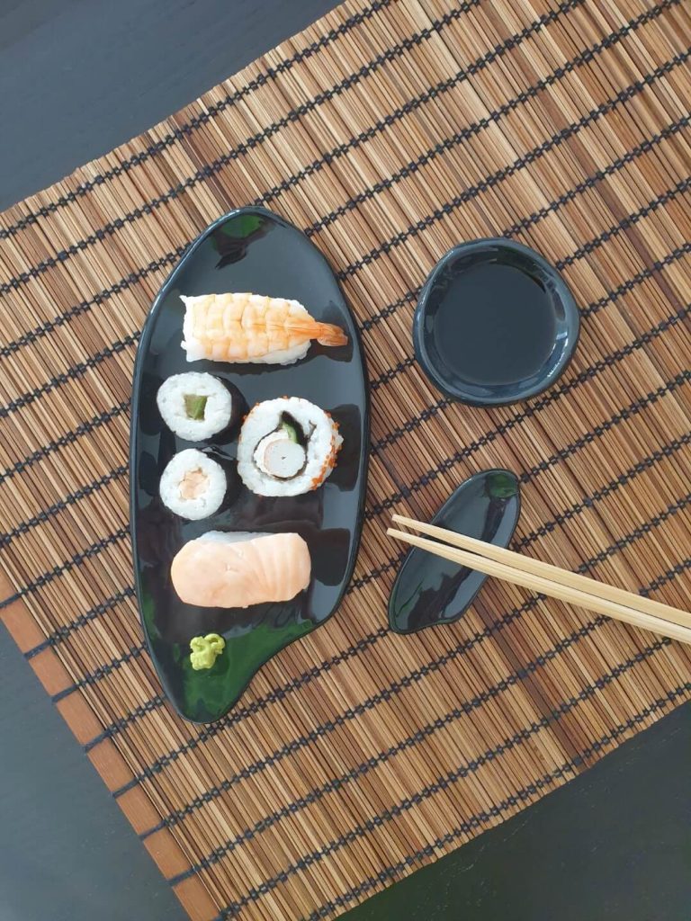 Asortiman znamke UP je resnično širok, nam pa so padli v oči inovativni seti za suši. Takšnih, kot jih še nismo videli. Ideja za oblikovanje se je Urški porodila iz krožnika, ki je služil kot unikatno odlagalo za kuhalnico. Ko pa se je ob obisku najbližjih v zadnjem trenutku odločila, da suši postreže kar na tej obliki krožnika, je dobila novo idejo. Zaželela si je, da bi oblikovala cel set. Oblika skodelice za sojino omako je že obstajala, a do takrat je bil njen namen zgolj za čajno svečko ali droben nakit. Precej več težav ji je povzročilo oblikovanje podstavka za palčke za suši.