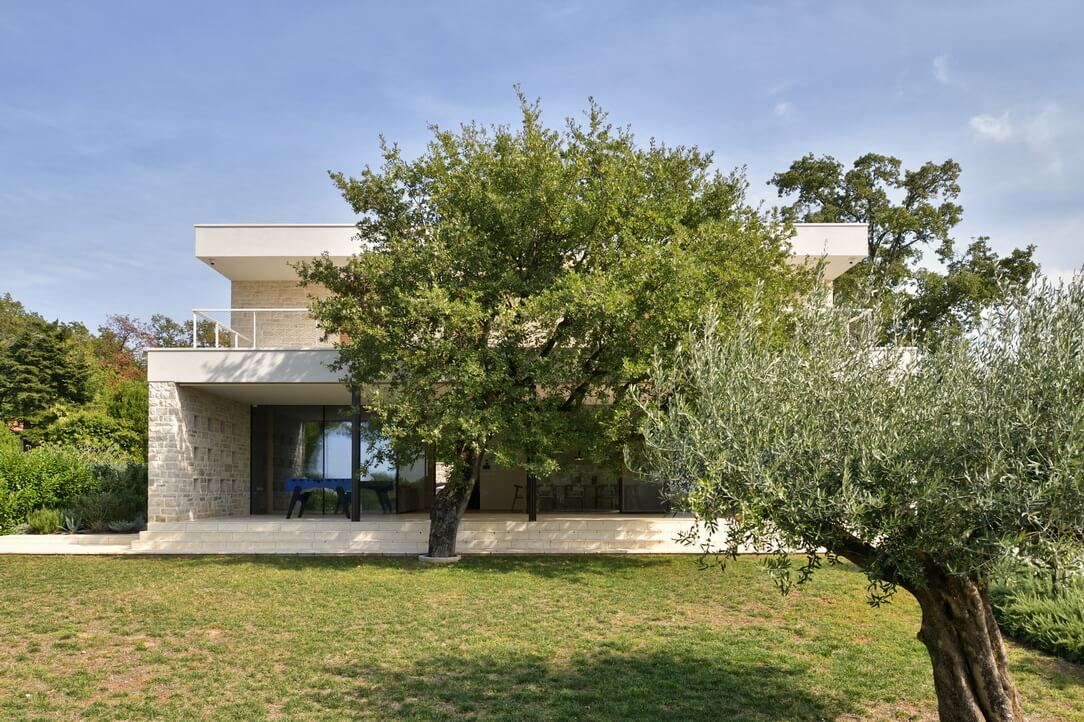 Med Umagom in Novigradom je na mestu stare pritlične hiše nastal nov dom, ki združuje sodobno arhitekturno zasnovo in umirjeno bivanje ob morju.