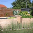 Naročniki, mlada družina, je želela vrt, primeren za druženje in igro otrok, ki bi ga bilo lahko vzdrževati, hkrati pa na njem pridelati tudi nekaj sadja in zelenjave. Tomaž Bavdež je vrt razdelil na tri segmetne: prvi, namenjen druženji in igri, je tlakovan z betonskimi ploščami in opremljen s senčnico in letno kuhinjo. Tu, v zunanji sobi, se lahko družina poleti zadržuje cel dan. Drugi segment je trata s sadnimi drevesi in okrasnimi rastlinami, kjer dominira mnogodebelna breza. Tretji segment pa je zelenjavni vrtiček, vzpostavljen v večih dvignjenih gredah, ki so ne le bolj praktične za obdelovanje, pač pa tudi prijetne na pogled.