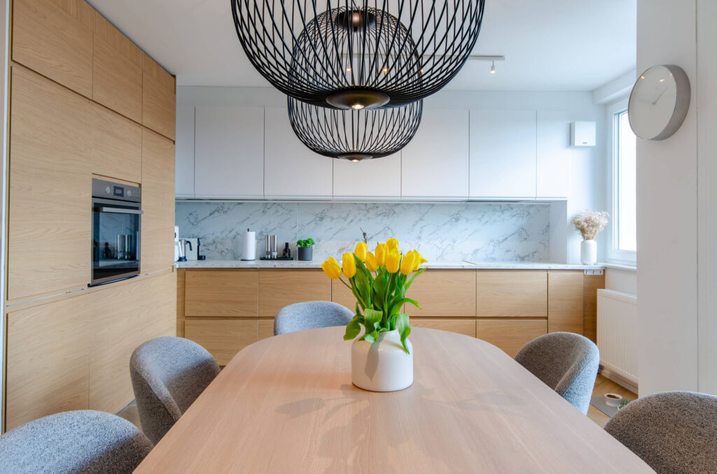 »Sprva sva imela kar nekaj pomislekov, denimo glede talnega ogrevanja, ki prinaša precej dodatnih stroškov in posegov. Prav zato se nama zdi pri nakupu starega stanovanja ključno preveriti, koliko je bilo dejansko prenovljeno – ali gre le za lepotne popravke ali tudi za menjavo inštalacij, ki imajo veliko večjo dolgoročno vrednost. Pogosto se namreč zgodi, da so pomanjkljivosti le zakrite, cena pa zaradi tega neupravičeno višja,« pojasni arhitekt in lastnik stanovanja ter doda: »Veliko del sva opravila sama, že samo z lastno rušitvijo sva precej prihranila – to je delo, ki se ga lahko loti skoraj vsak z nekaj volje in časa. Velik strošek predstavljata tudi montaža in vgradnja pohištva. Pohištvo po meri sicer omogoča boljši izkoristek prostora, a je dražje, zato je mogoče z dobrim premislekom o postavitvi sten in dimenzijah prostorov prilagoditi tloris tipskemu pohištvu ter tako bistveno zmanjšati stroške, ne da bi trpela funkcionalnost ali estetika.«