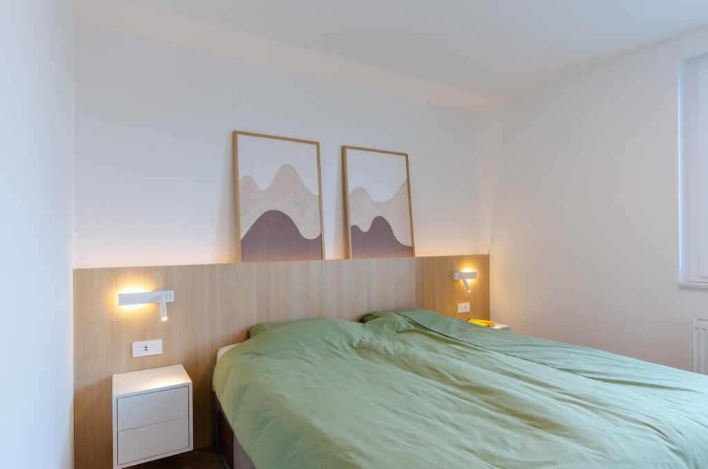 Odločila sta se tudi za manjše prilagoditve tlorisa. V sklopu prenove so porušili nekatere predelne stene ter s tem odprli tloris in izboljšali prostorsko pretočnost. Z novo razporeditvijo je bil oblikovan ločen prostor za garderobo s pralnico, kar je bistveno izboljšalo funkcionalnost stanovanja in ga prilagodilo sodobnemu načinu bivanja.
