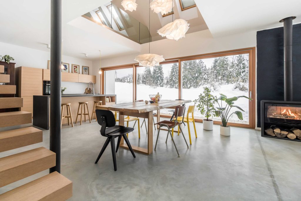 »Največja dodana vrednost hiše pa je predvsem idilična, pravljična lokacija na samem, naselja se praktično ne čuti zaradi same orientacije hiše in nemalokrat zjutraj iz spalnice vidijo srne, ki tekajo po polju. V zimskem času pa je sploh čarobno, ko v kaminu gori ogenj in lahko na toplem skozi velika panoramska okna opazuješ pobeljeno naravo,« zatrdi arhitektka, ki je poskrbela, da lahko družina kar najbolj užije naravo, ki jo obdaja.