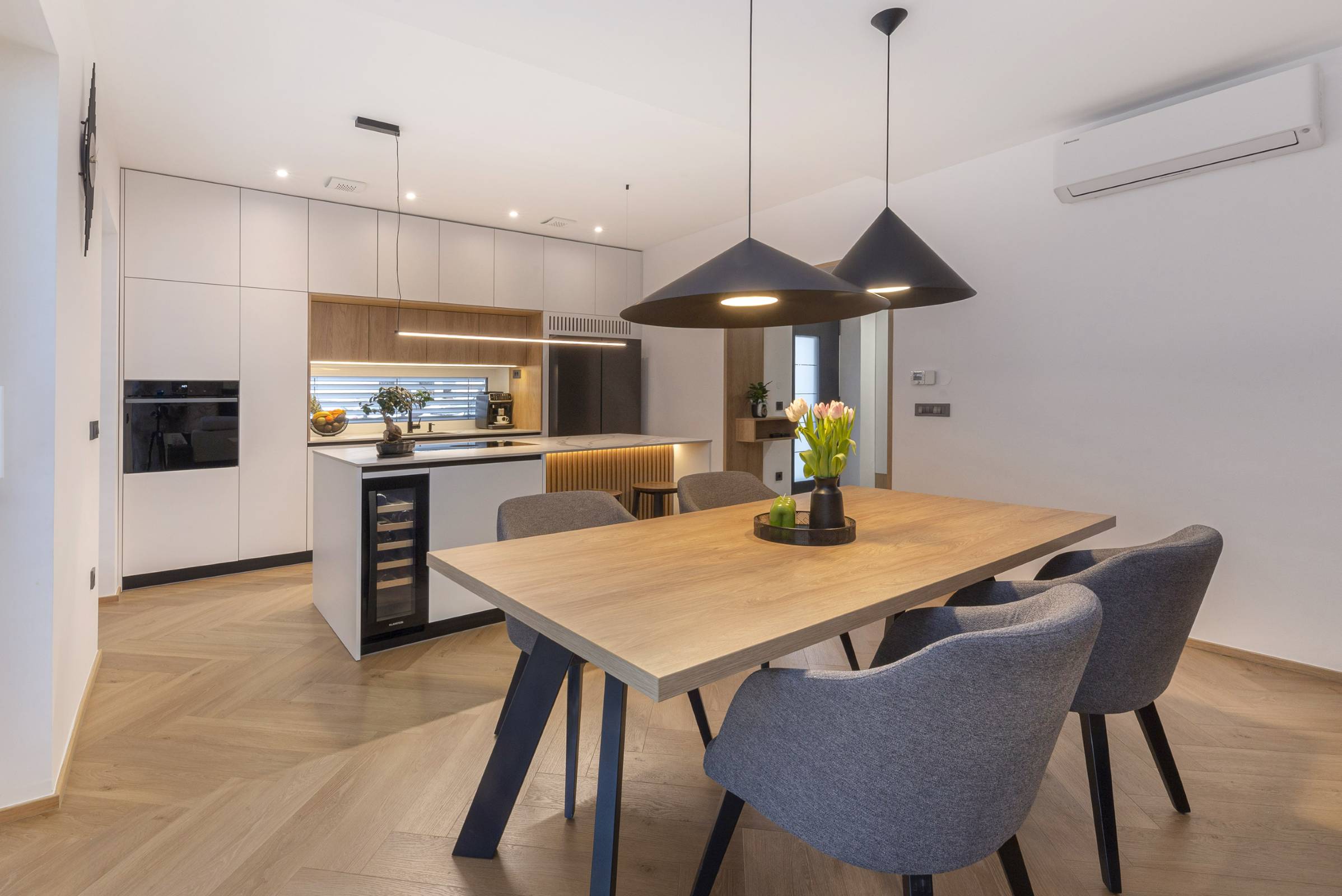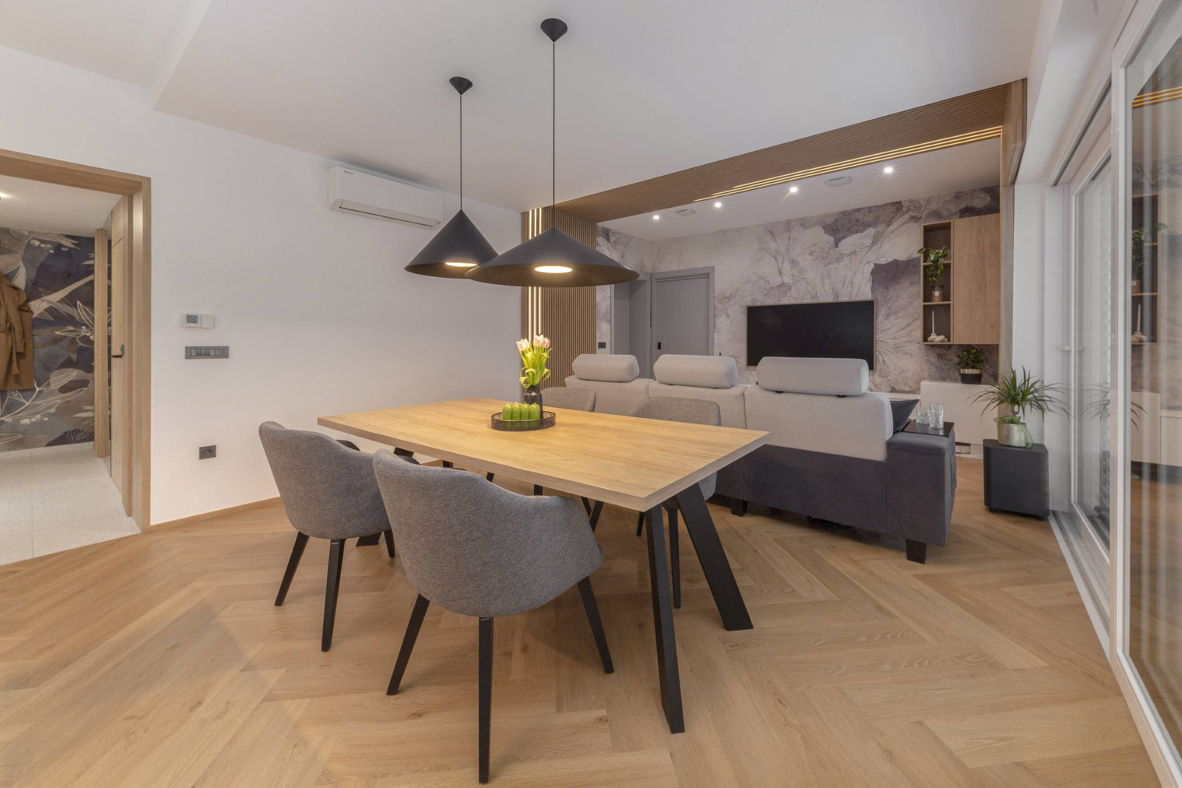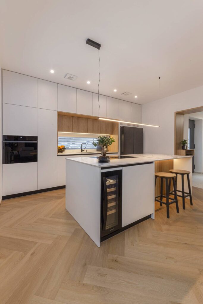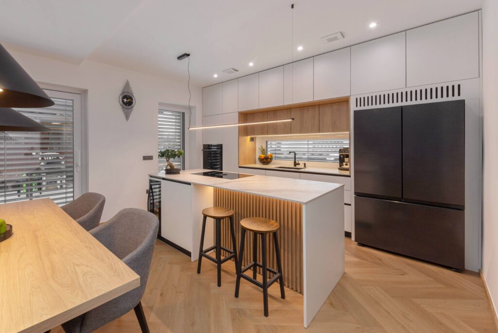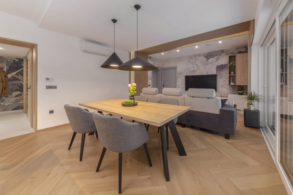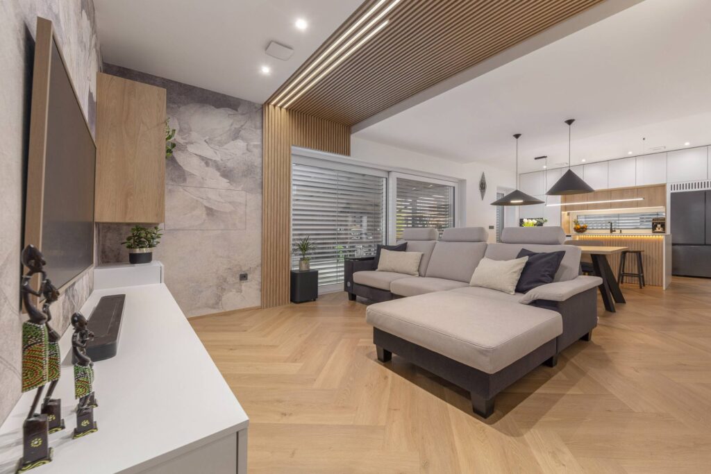 Končni rezultat prenove je sodobno, svetlo in funkcionalno družinsko stanovanje, idealno za življenjski slog in potrebe naročnikov. Nekdaj razdrobljeni in nepovezani prostori so se preobrazili v usklajeno celoto, kjer arhitektura in materiali skupaj ustvarjajo topel, prijeten in dolgoročno kakovosten dom.