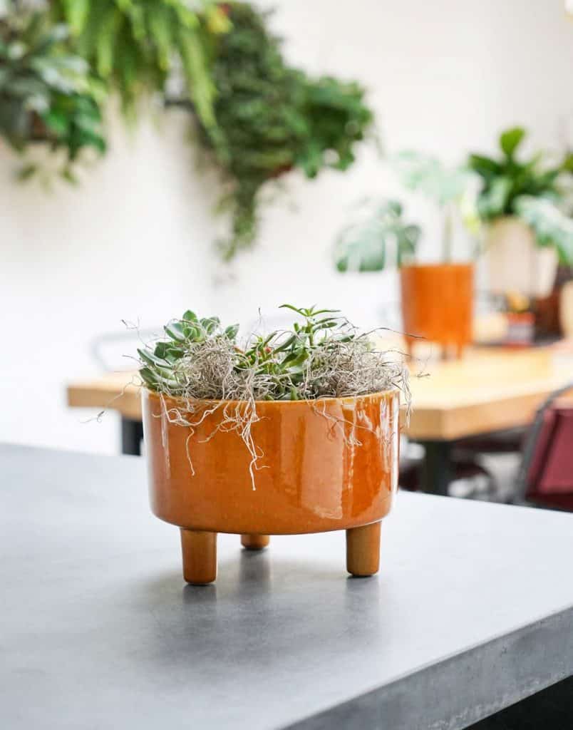 Navaden lonec za rože ali trinogi lonec? Glasujemo za slednjega, sploh, če ga postavite na višje ležeče mesto, da nožice pridejo bolj do izraza. Vanj zasadite različne kaktuse ali aranžmaje sukulent.