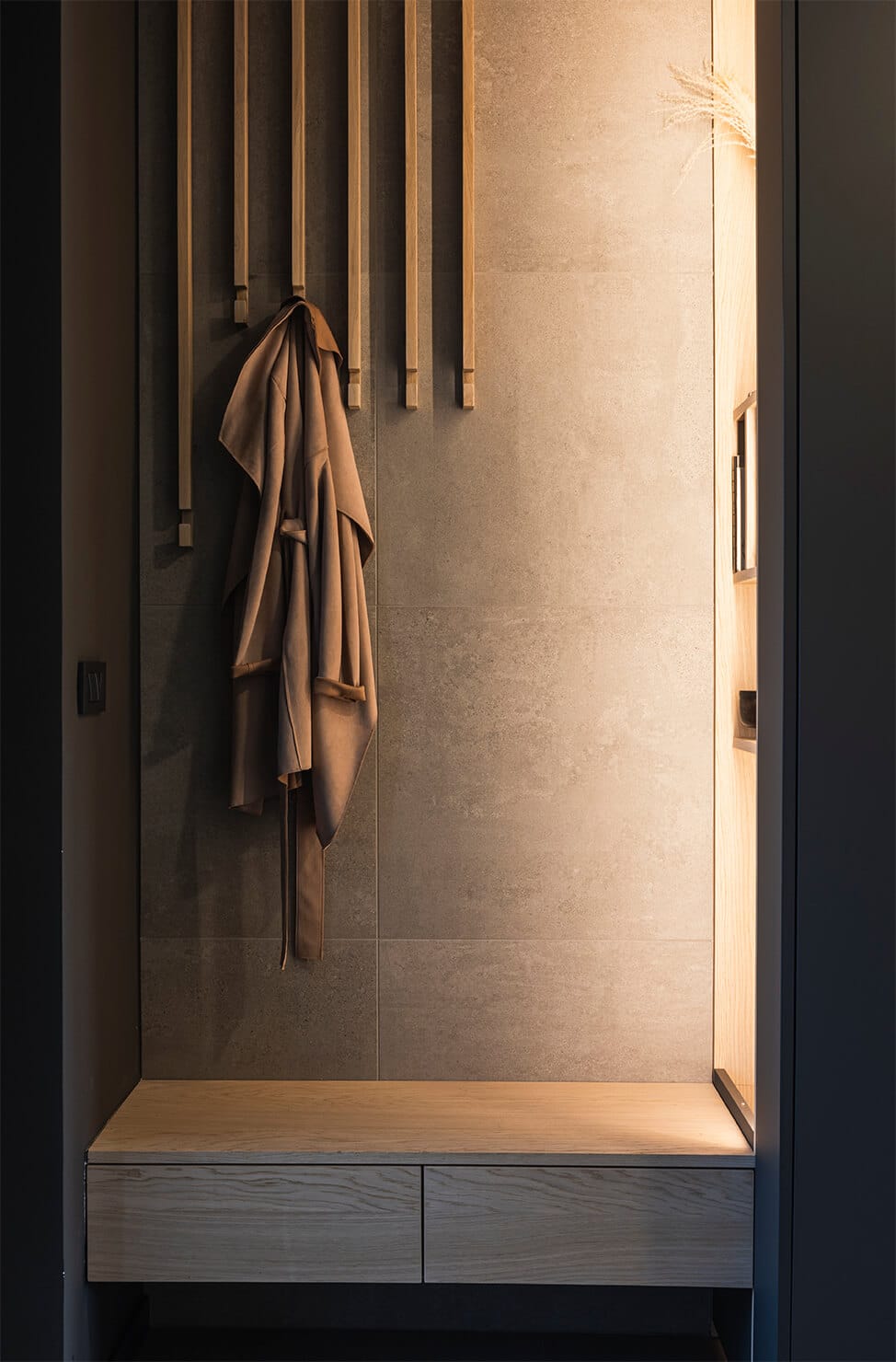 Zgodba o tem interierju se je začela nekoliko neobičajno. Naročnika sta najprej izrazila dvom glede referenčnega sloga oblikovalcev NOTIO oblikovanje, a so ju prijetni občutki in varnost ob prvem stiku prepričali k sodelovanju. Ta izziv je dokazal, pove arhitektka Gea El Habashy, da je s poslušanjem in razumevanjem želja ter s prilagajanjem naročniku možno oblikovati prostor, ki odraža osebnost lastnikov, hkrati pa ohranja strokovnost zasnove.