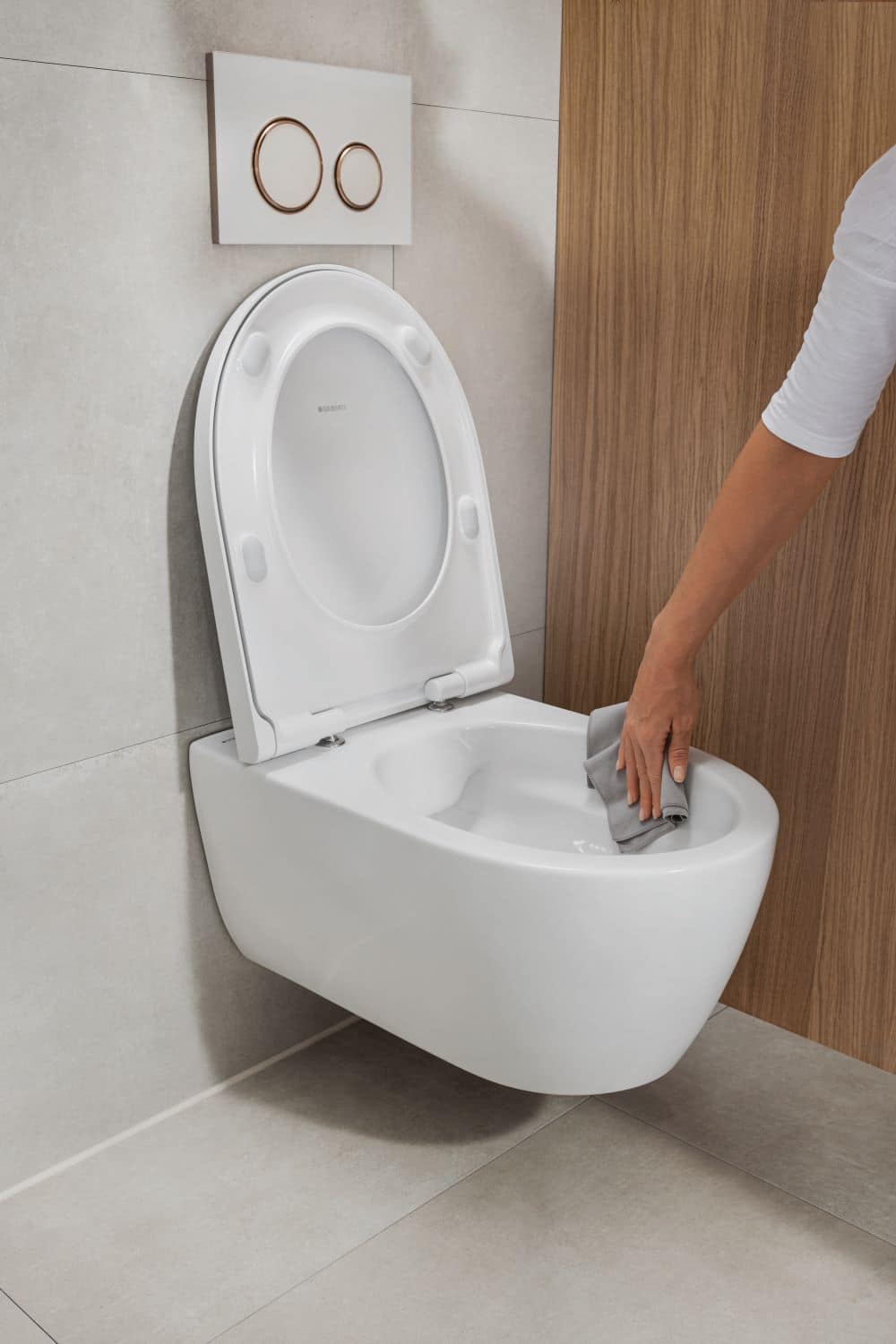 WC školjke brez roba so namreč veliko bolj higienične, saj se lahko zaradi njihove notranje oblike enostavno očistijo zgolj s potegom krpe. Skritih, težko dosegljivih mest praktično ni. Že samo to je velika prednost, saj je manj možnosti za nalaganje umazanije, bakterij in vodnega kamna. Investicija v WC školjko brez roba pa se nenazadnje obrestuje tudi iz okolijskega vidika. Zaradi premišljene oblike stranišča se namreč porabi manj vode pri splakovanju in manj čistilnih sredstev pri čiščenju.