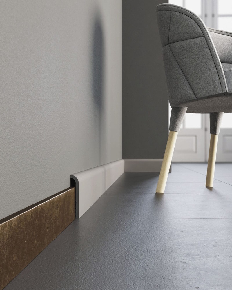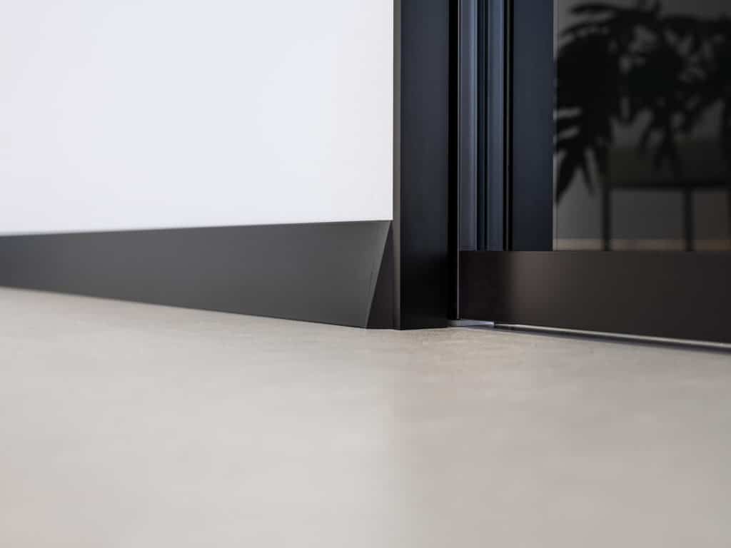 Vrata ECLISSE se popolnoma ujemajo z zaključnimi talnimi letvami ECLISSE Delta, ki so prava arhitekturna posebnost. Gre za prvo nagnjeno letev na trgu, ki se elegantno zlije s steno in nadaljuje minimalistično linijo vrat.
