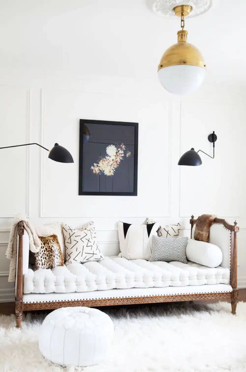 »Najprej sva izbrala tanke bele letve, potem pa dodala nekaj stenskih okvirjev. Prostor je kar oživel,« pravi Aljaž. »Zvečer pa se mehka svetloba, skrita za letev pod stropom, razlije po prostoru in ustvari prav romantično atmosfero.«