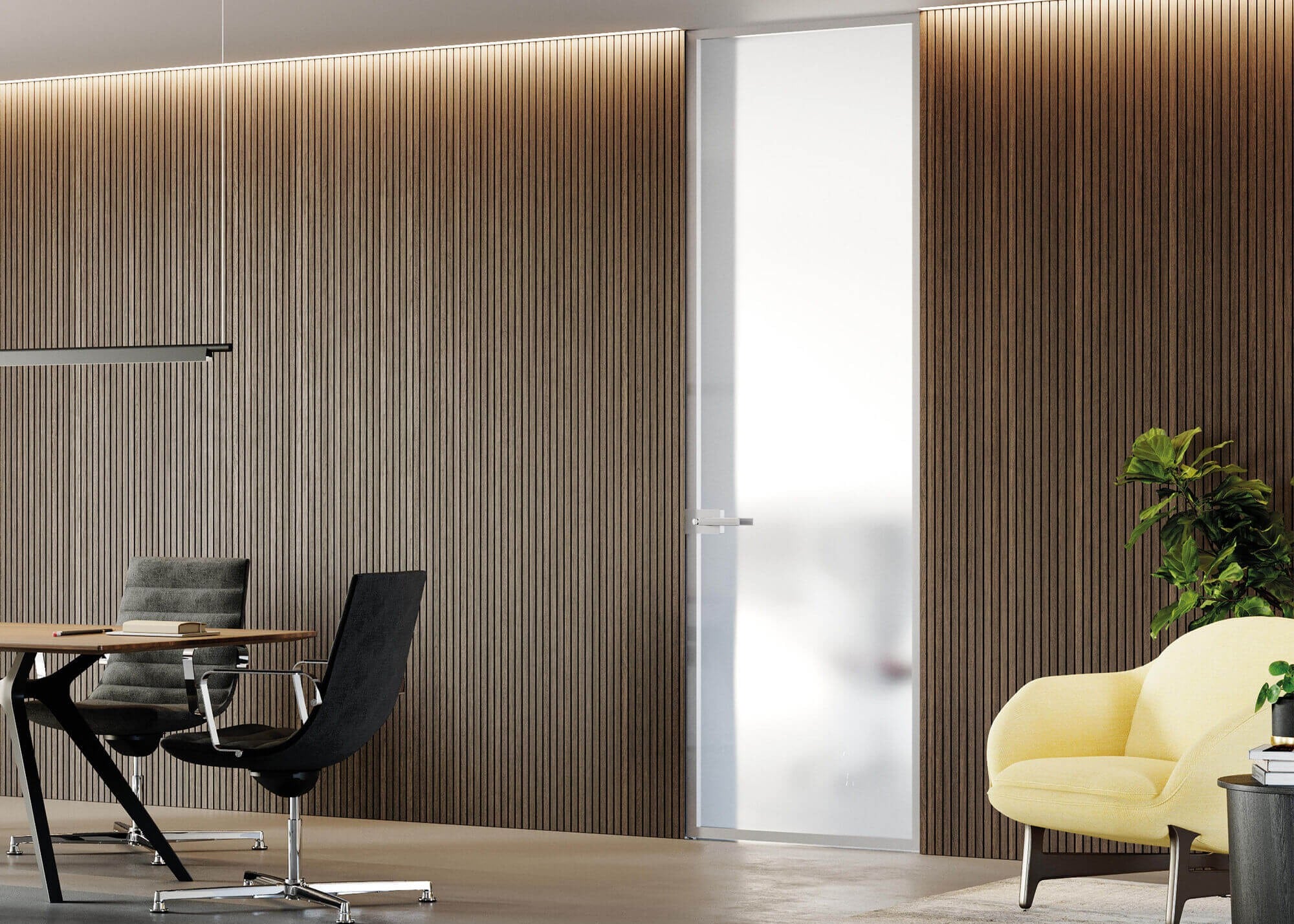 Vrata ECLISSE se popolnoma ujemajo z zaključnimi talnimi letvami ECLISSE Delta, ki so prava arhitekturna posebnost. Gre za prvo nagnjeno letev na trgu, ki se elegantno zlije s steno in nadaljuje minimalistično linijo vrat.