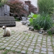 V senčnem delu vrta so poti ponekod obrobljene s poleglimi debli in vejami, ki jih obrašča mah. Lastnica se je tako navdušila nad svežino zelene preproge, da je poleg skalnjaka in štorovnjaka na vrtu zrasel še mahovnjak iz štorov in mahu.