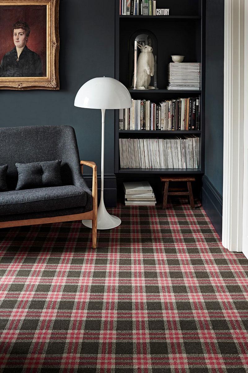 6. Preproga: Če niste navdušeni nad tem, da bi imeli celoten pod v karirastem vzorcu, se lahko odločite samo za karirasto preprogo.