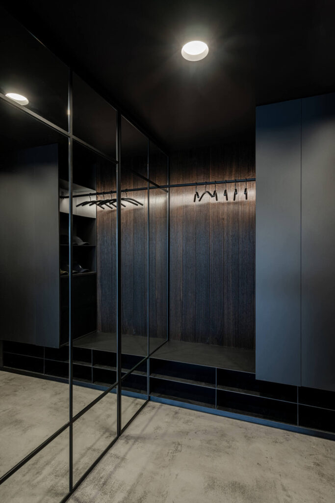 Kljub številnim razkritim konstrukcijskim elementom je zasnova izjemno funkcionalna. Prezračevalni vodi so diskretno skriti v spuščene strope spodnjih etaž, njihovi izhodi pa se neopazno nadaljujejo skozi pohištvene baze. V vertikali se skozi stanovanje vije še jašek za perilo, ki povezuje vse tri etaže – rešitev, ki je bila izvedljiva po zaslugi pravočasnega vključevanja arhitektov v fazi načrtovanja.