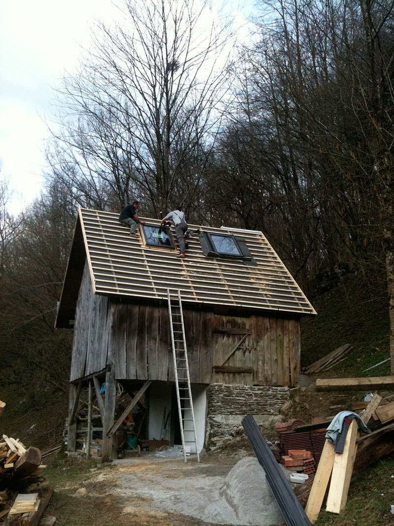 Ponovna uporaba je bila osnovno vodilo pri gradnji. Stare strešnike, ki so jih našli v zapuščenih hišah v Bači in okolici so uporabili namesto ploščic v kopalnicah in v kuhinji. Iz nekaterih strešnikov so nastale stenske svetilke. Svetil sta potrebovala zares veliko, zato je Steffan zavihal rokave in lestence naredil kar sam. Večina jih je iz hitro sušečega betona, nekaj pa iz emajliranih posod, ki jih je našel na bolšjih sejmih.