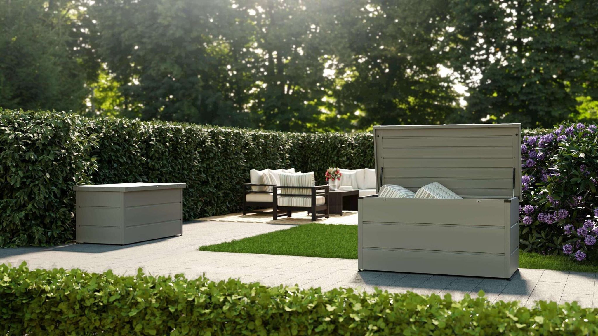 Če je prostor omejen, je vrtni zabojnik praktična rešitev za organizirano shranjevanje manjših predmetov. Te vremensko odporne škatle so popolne za shranjevanje blazin, orodij za peko na žaru in manjših vrtnih pripomočkov, hkrati pa jih ščitijo pred dežjem in UV-žarki. Plusi: