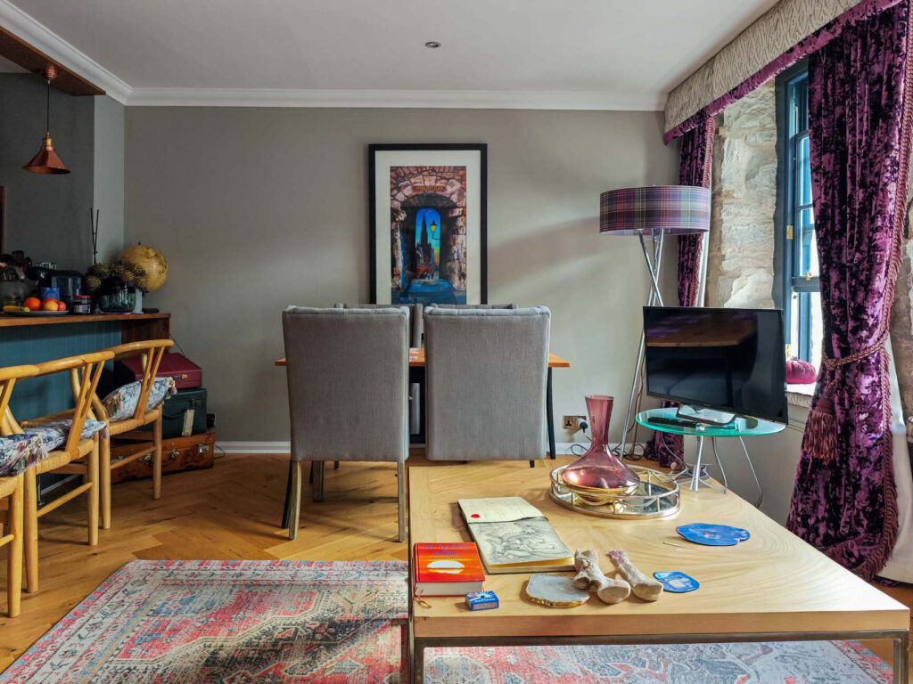 Stanovanje v Edinburghu je tako postalo več kot le interjer. Je prostor, kjer se srečajo zgodbe, mitologija in domišljija – in kjer stene resnično začnejo pripovedovati.