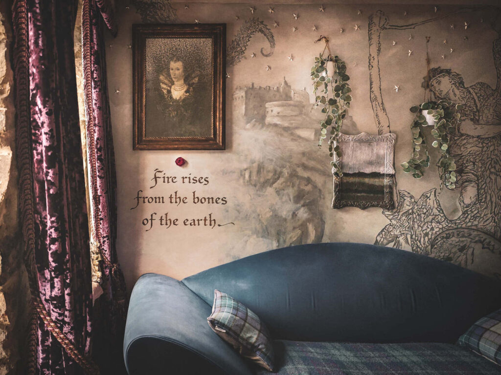 Zgodba se pravzaprav ni začela na Škotskem, ampak v Ljubljani. Lastnica stanovanja v Edinburghu je namreč obiskala njun znameniti interjer Mondo Diverso, kjer se je popolnoma zaljubila v njun pristop k prostoru. Tam so se spoznali in hitro spoprijateljili, kmalu zatem pa sta Ivan in Kaja prejela povabilo, naj prideta ustvarjat tudi v njeno stanovanje. Edina želja naročnice je bila, da prostor zaznamuje duh škotske mitologije. Vse ostalo je prepustila njuni domišljiji. Ivan je pred začetkom ustvaril zgodbo, ki je služila kot izhodišče za poslikave – nekakšen kompas, ki je vodil nastajanje ambienta.