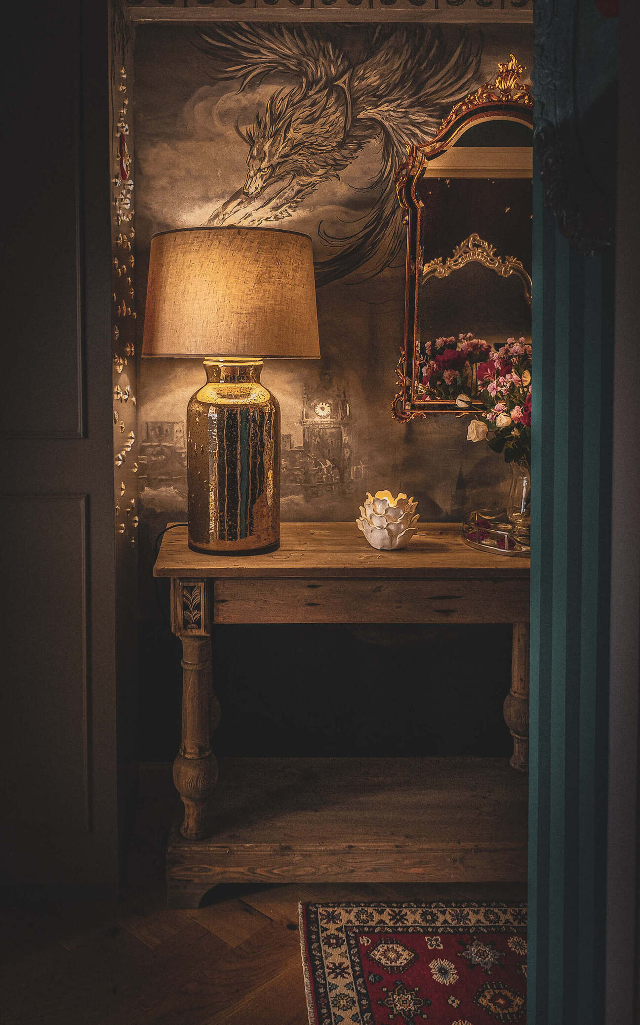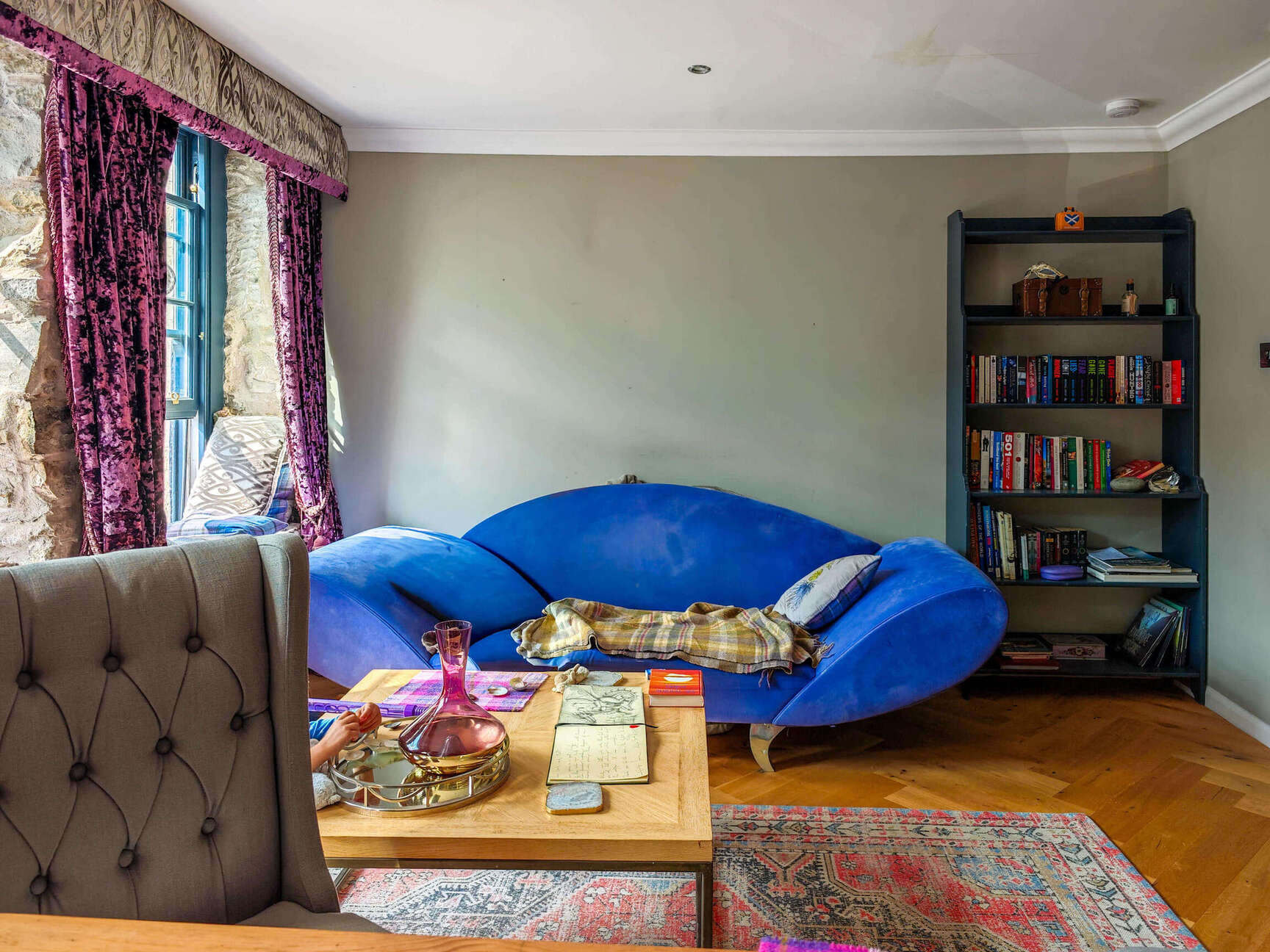 Stanovanje v starem mestnem jedru Edinburgha je imelo že pred prenovo prijeten značaj: kamnite okenske niše, parket v ribji kosti in nekaj skrbno izbranih kosov pohištva. A stene so bile večinoma prazne, prostor pa je deloval precej nevtralno in zadržano. Lastnica, velika ljubiteljica škotske mitologije, si je želela, da bi stanovanje dobilo izrazitejšo identiteto – takšno, ki bi odražala zgodbe, legende in skrivnostno atmosfero mesta.