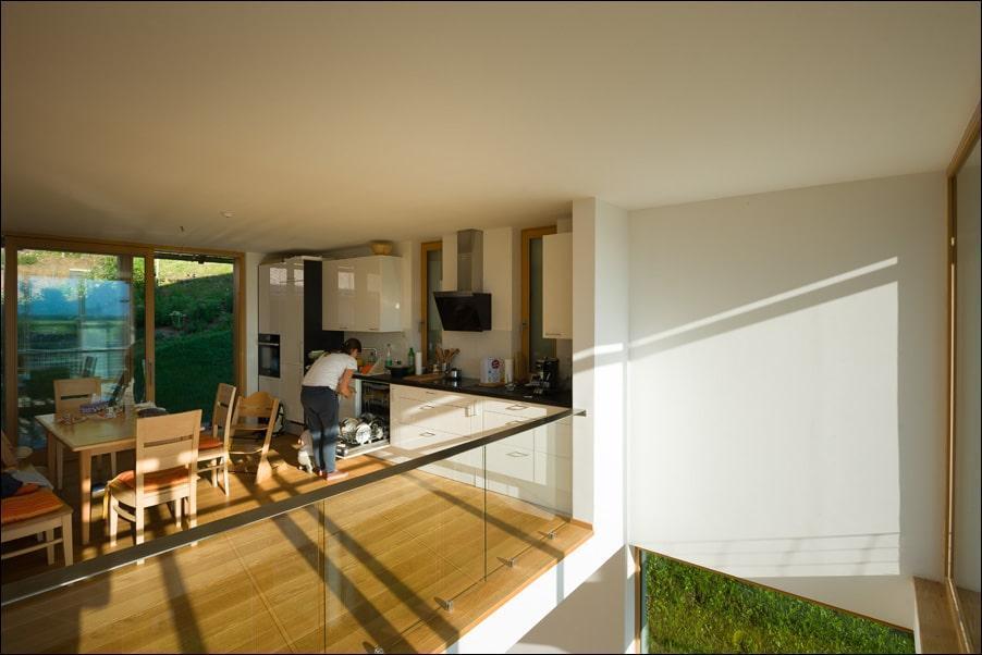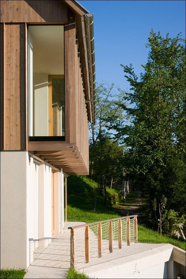 Kombinat arhitekti so bili pred zanimivim izzivom: na mestu starejše stavbe, na strm teren, postaviti hišo, ki bo prilagojena na alpske pogoje, v kateri bosta lahko sobivali dve generaciji, ki se bo lepo vklapljala v tkivo idilične vasice, in ki bo varčna in energijsko učinkovita.