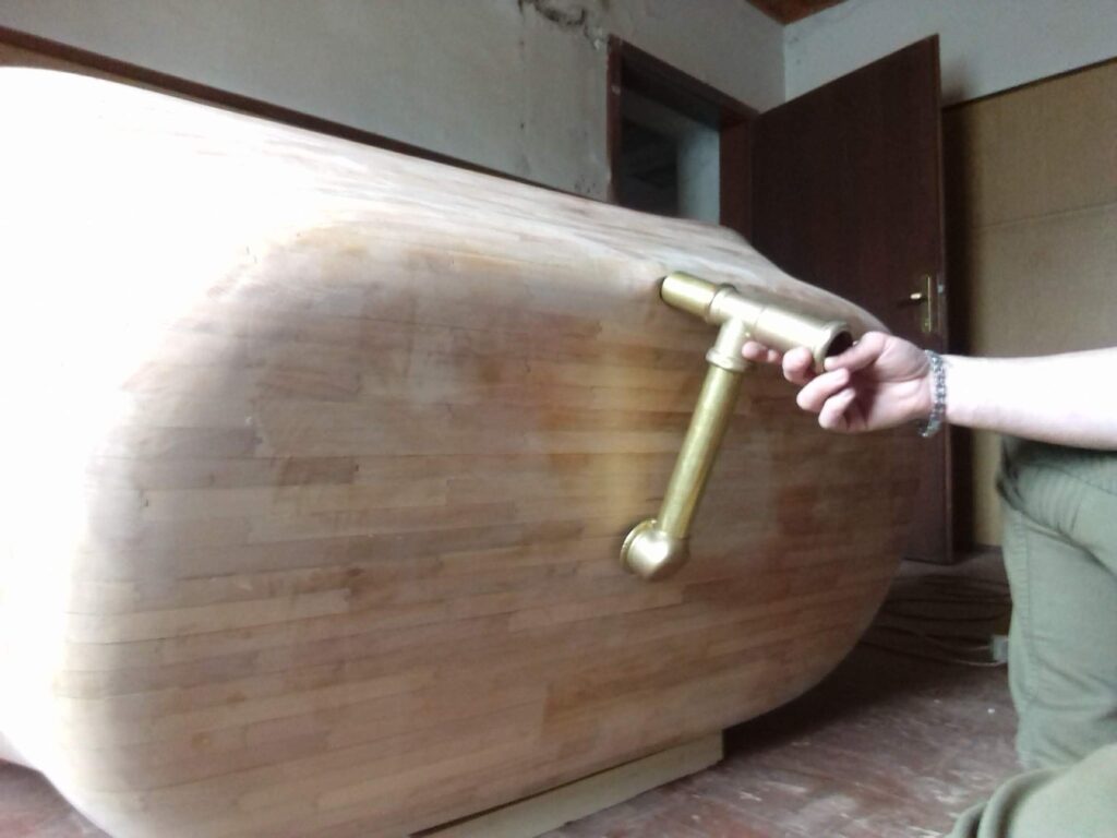 »Kad je v kopalnici največji kos pohištva, ki bi moral biti najpompoznejši. Ker imava rada kombinacijo bele barve in lesa, v kopalnicah pa je hitro vse preveč belo, sem iskal možnosti kombinacije lesene opreme. Na internetu sem našel generične lesene kadi in dobil idejo, da lahko takšno izdelam po meri, za naju. Nastal je izziv izdelati kad, udobno in dovolj veliko za dva, ki je tudi ergonomsko oblikovana ali vsaj podpira glavo za popolno sprostitev. Tako sem začel snovati, oblikovati, kaj hitro pa sem tudi zavihal rokave. Vsak lahko sestavi kopalnico iz generične ponudbe, a to ni izziv,« o svoji odločitvi pove Jaka, sicer diplomirani ekonomist, ki mu delo z rokami ni tuje.