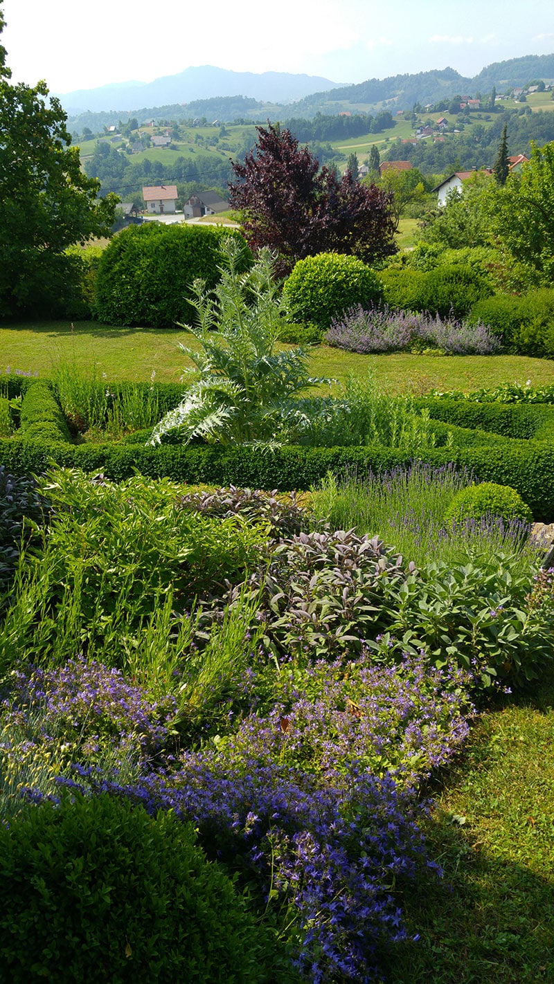 Lega vrta je izrazito južna: “Človek bi rekel, da je idealna, ampak vsak ideal ima tudi kak minus,” pove lastnica. “Poleti je izjemno vroče; lahko bi rekli, da imamo skoraj mediteransko mikroklimo. In če ne bi zasejala rastlin, ki to ljubijo, bi imela veliko problemov. Izbrala sem sivke, žajblje, timijane, figo … in moram reči, da mi vrt lepo uspeva.”