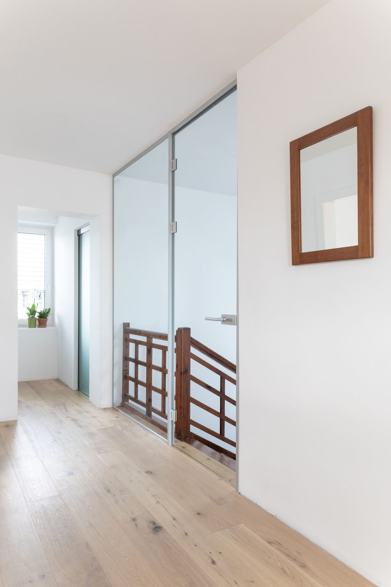 Prav tako so se zelo trudili ohraniti vse uporabne stare elemente, na primer stropnike. »Pristop je bil tak, da ne posegamo v tisto, kar je dobro, kar je ohranjeno. Stropniki so del prvotnega ostrešja, skoblani, že to da svoj čar prostoru. Naročnik jih je sam zaščitil z oljem, osvežil barvo,« povesta arhitektki in dodata, da je v prvotni obliki ostalo ohranjeno tudi stopnišče iz pritličja v mansardo.