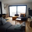 Štirisobno stanovanje je tako postalo dvosobno. Osrednji bivalni prostor, ki združuje bivše kuhinjo, jedilnico, dnevno sobo in spalnico, je srce doma. V njem se kuha, obeduje, počiva in dela. Namesto pregradnih sten posamezne prostore ločujejo betonski stebri oziroma celo – motor. In kot da to ne bi bilo dovolj ekstravagantno, dom krasijo uporabne betonske skulpture, vgrajene linijske luči (oboje Žanovo delo), stol iz pleksi stekla, jelenovo rogovje (dedkova trofeja) in perfektno zložena skladovnica drv.