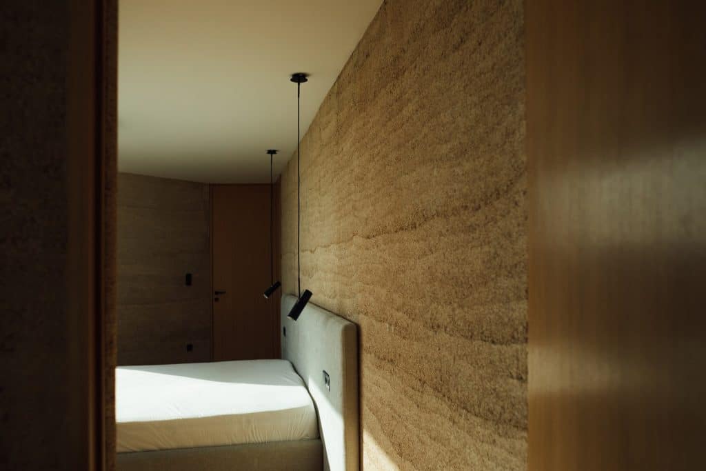 Pravokotno obliko objekta dopolnjuje trikoten rastlinjak ob strani, kjer lahko družina sama goji zelišča in vrt. Notranjost se podreja zunanjosti in pusti, da spregovori narava. Pri oblikovanju interierja so uporabili izbrane kose, ki ne zapolnjujejo obodnih sten stavbe, temveč so umaknjeni proti njeni sredini.