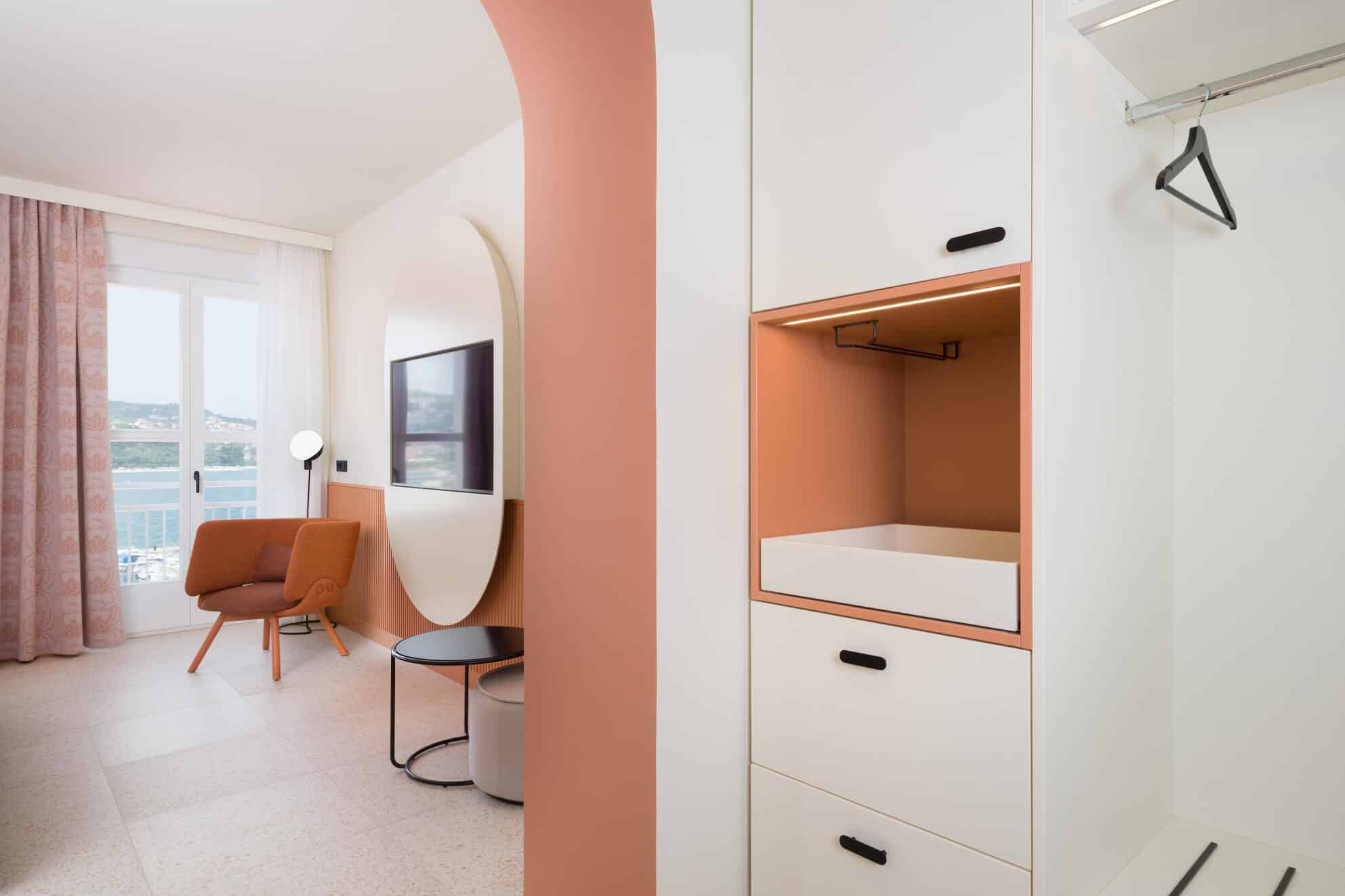 Ta, javni del, je zasnovan s številnimi drznimi in nepričakovanimi poudarki, ki hotel v mednarodnem slogu postavijo nazaj v njegovo specifično geografsko lokacijo – na stik Mediterana in nekdanje Habsburške monarhije. Arhitekti so izraz zasnovali tudi kot hommage izvorni notranji opremi Eda Mihevca in prof. Olge Rusanove, ki je bila polna tekstur in dekoracije.