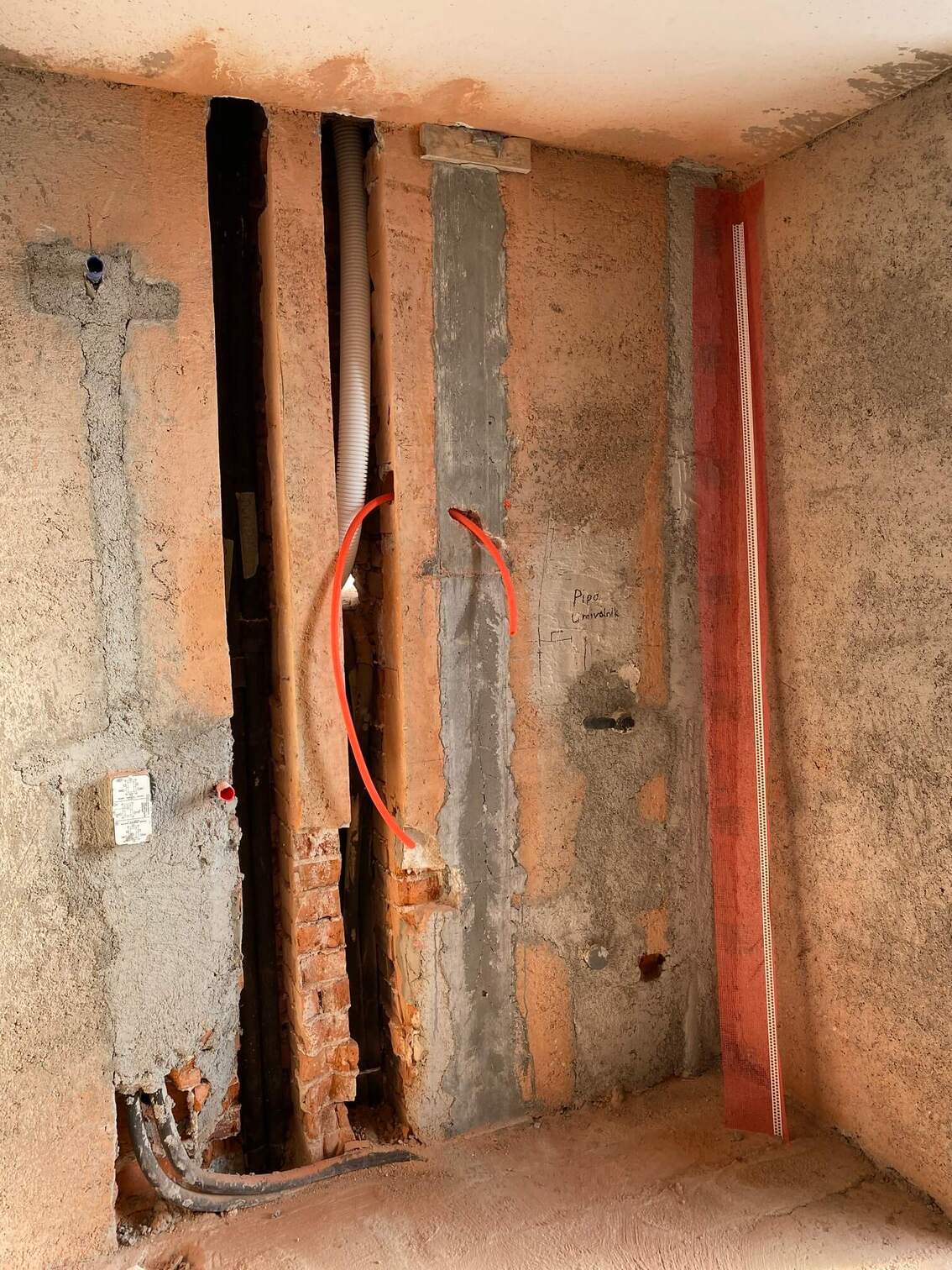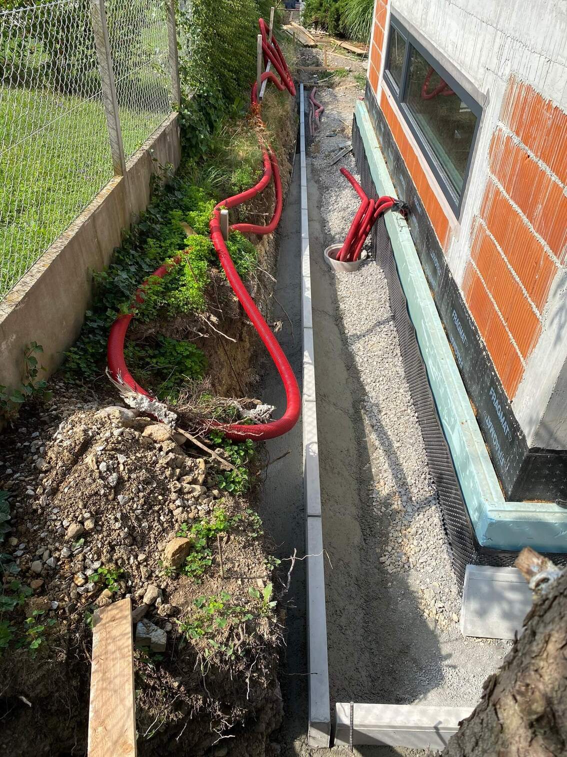 Prav tako so na novo toplotno izolirali vse notranje stene, vkopane v teren, in celoten obod stavbe. Tega so se lotili tako, da so v kleti in v bivalnem prostoru odstranili obstoječi tlak ter ga poglobili za namen hidroizolacije, s čimer so se izognili toplotnim mostovom in morebitni vlagi, ki bi povzročila razvoj plesni.