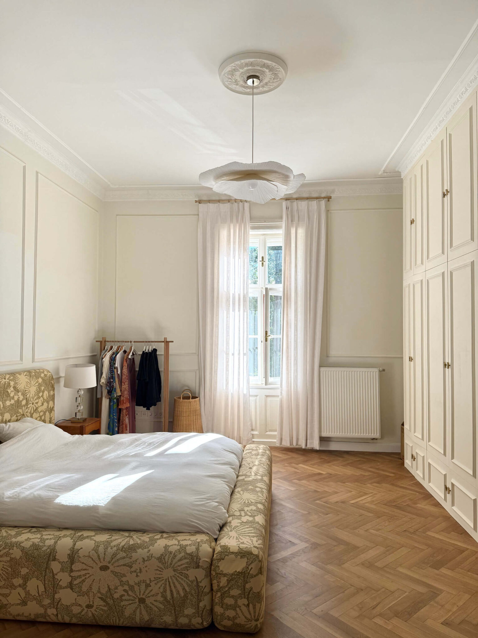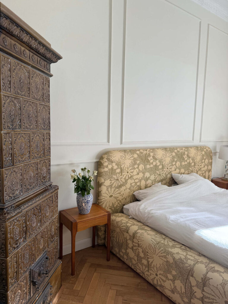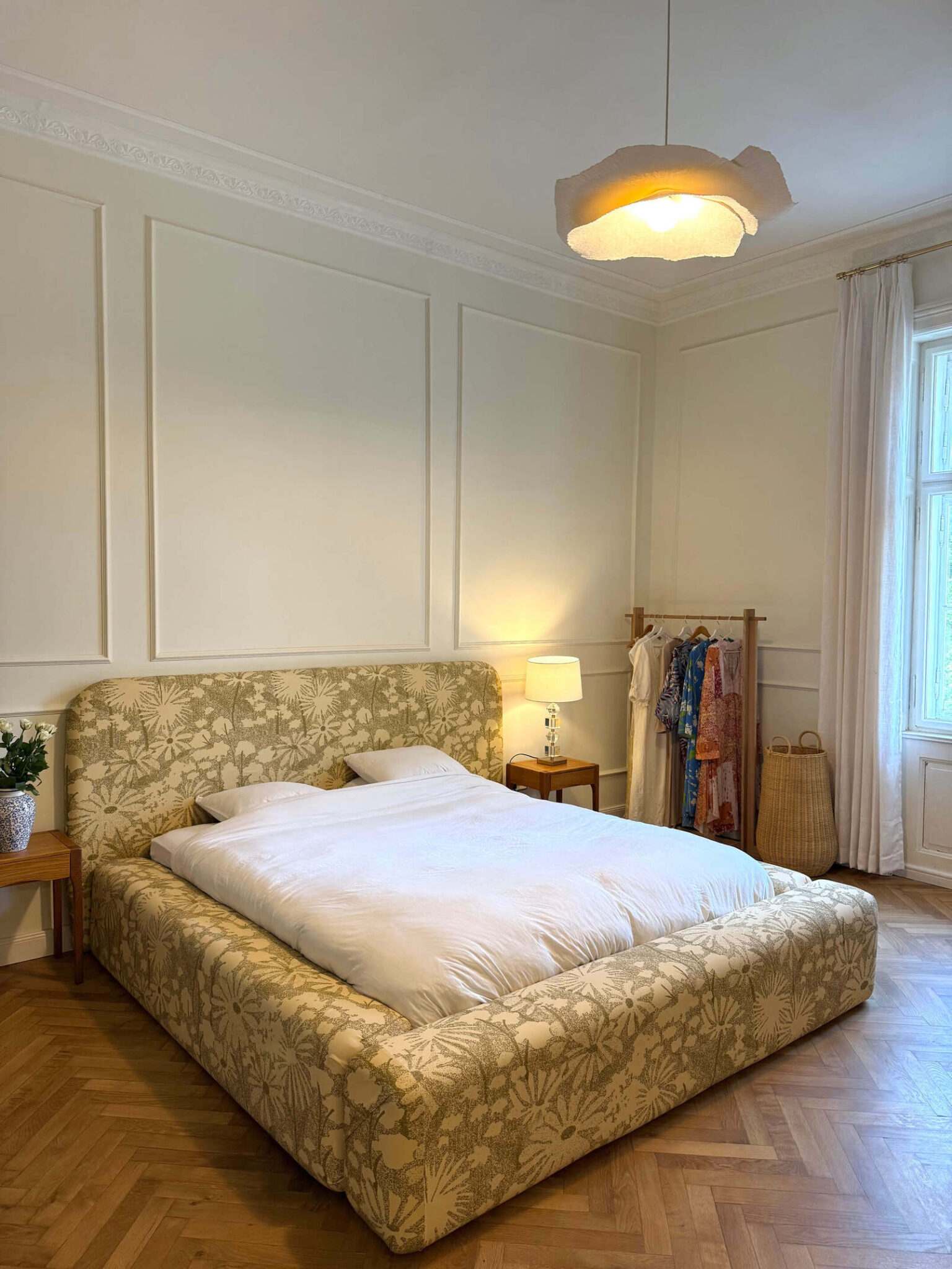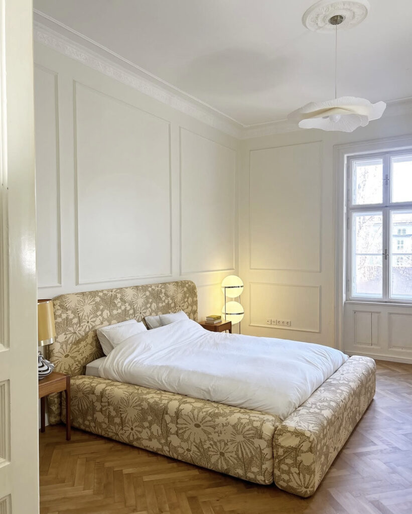 Alji je bilo kot ilustratorki in oblikovalki stanovanje tudi eno veliko platno. Svojo ustvarjalnost oziroma ideje je predstavila na več načinov. »Torej, prva stvar, ki sem jo naredila za stanovanje, je bila preproga. Zamisel je bila, da bi nanjo umestila vzorec rož, da se počutiš, kot da se sprehajaš po travniku,« razlaga. Naslednja je bila postelja. Kot pravi, sta že imela posteljo, ki pa ji ni bila najbolj všeč, zato sta izdelala novo od samega začetka. »Jaz sem bila zadolžena za idejno zasnovo, torej neko vizualno zasnovo, Niko pa potem naprej za tehnično izvedbo,« pojasnjuje Alja.