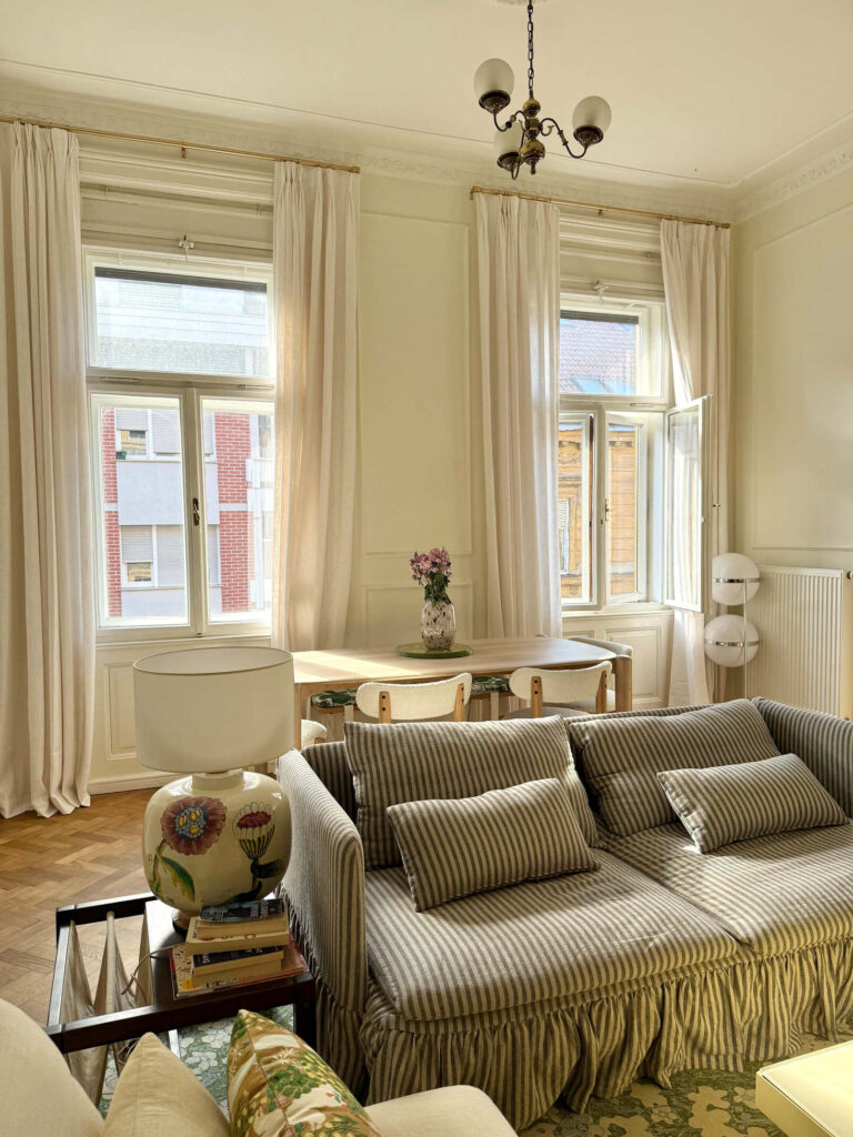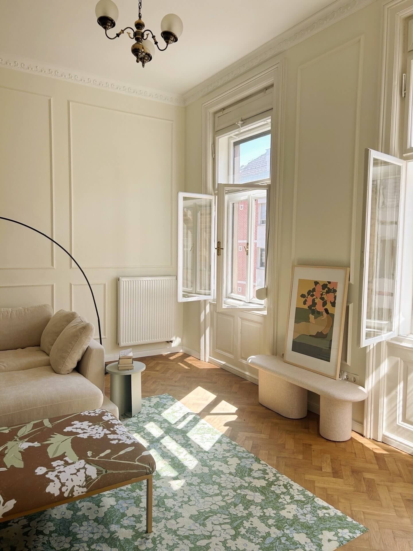 Alja in Niko, ki po poklicu spadata v sfero kreativnosti in umetnosti, sta odlična predstavnika generacije Z. Kot družbeno odgovorna in okolijsko ozaveščena nista le potrošnika, zato njuna ustvarjalnost in projekti, ki jih delita na družbenih omrežjih, upravičeno spodbujajo zanimanje med podobno mislečimi. Zanimivo je, da obiskano stanovanje ni bila njuna prva nepremičnina. Najprej sta kupila in uredila hišo, potem pa sta šla v stanovanje. Kot je povedala Alja, sta želela nazaj v center mesta. Zato sta hišo, ki sta jo kupila v tretji gradbeni fazi in dokončala, kmalu prodala. »Nekako sva v tisti hiši ugotovila, da si želiva nazaj v center. Od nekdaj sem si želela staro meščansko stanovanje, torej visoke strope, pa življenje v centru mesta. A sva kar nekaj časa iskala stanovanje in potem našla točno to, kar sva iskala.«