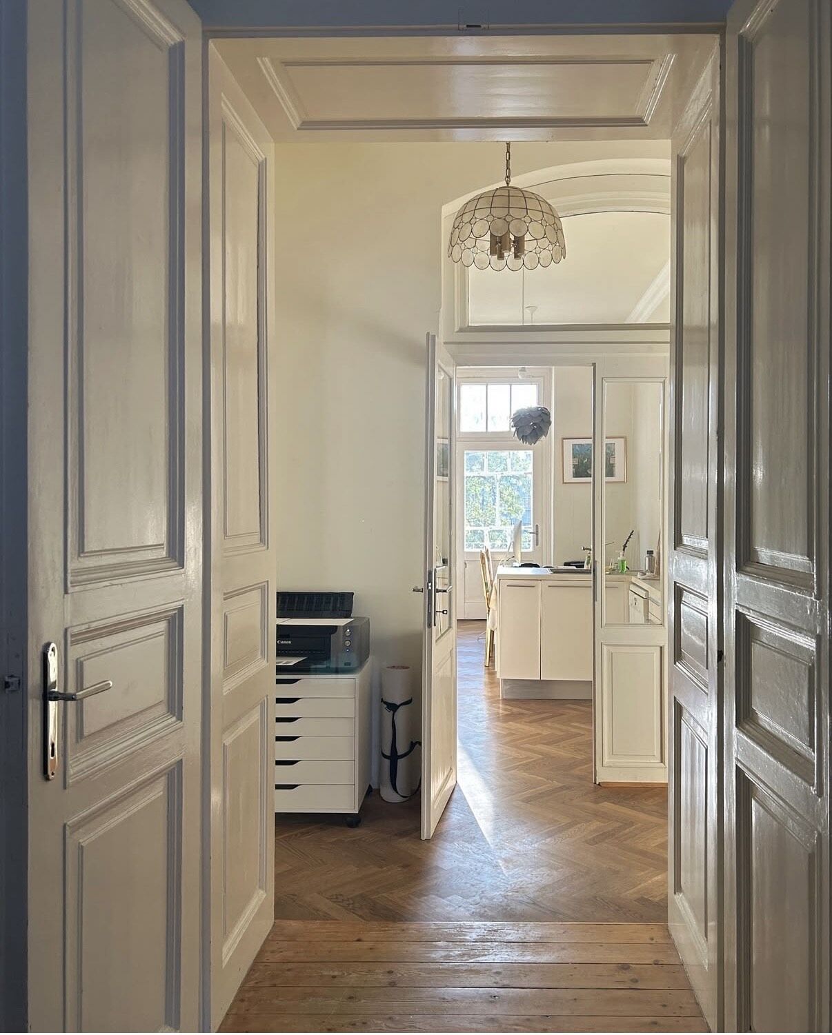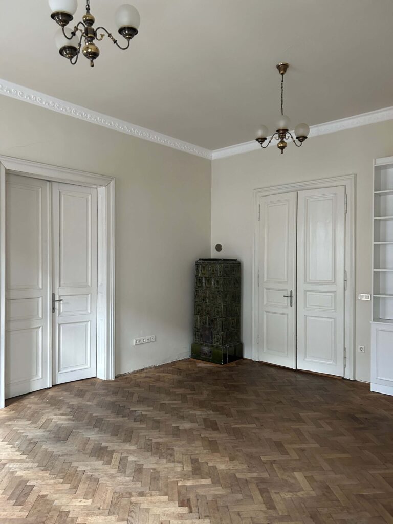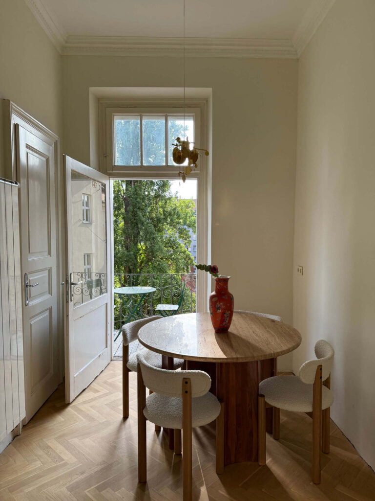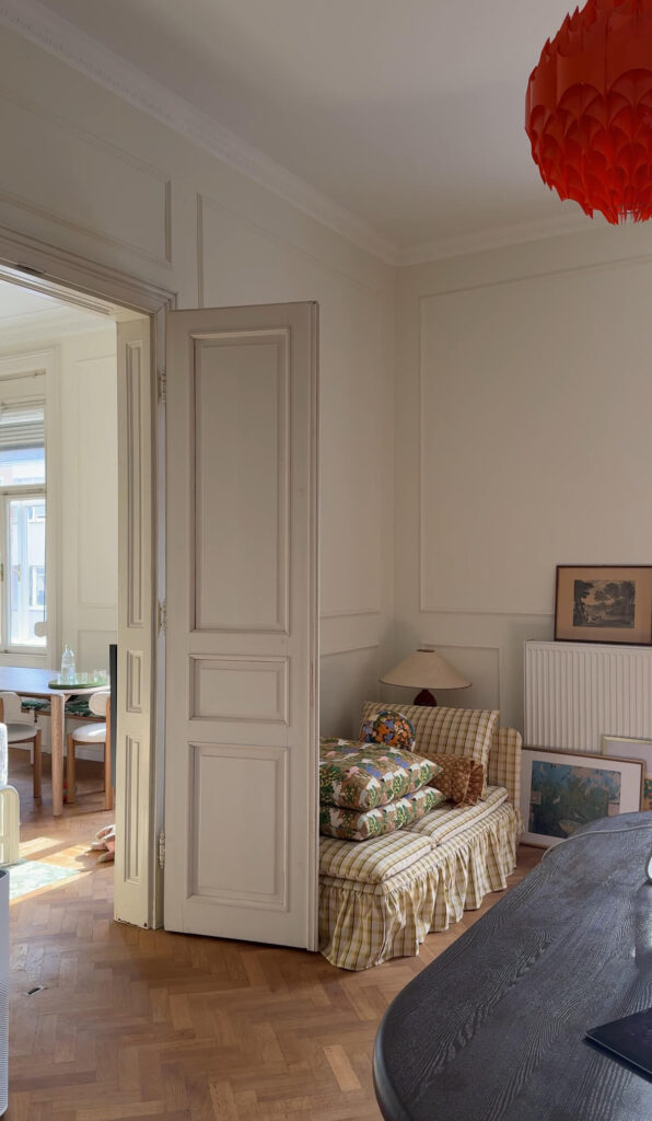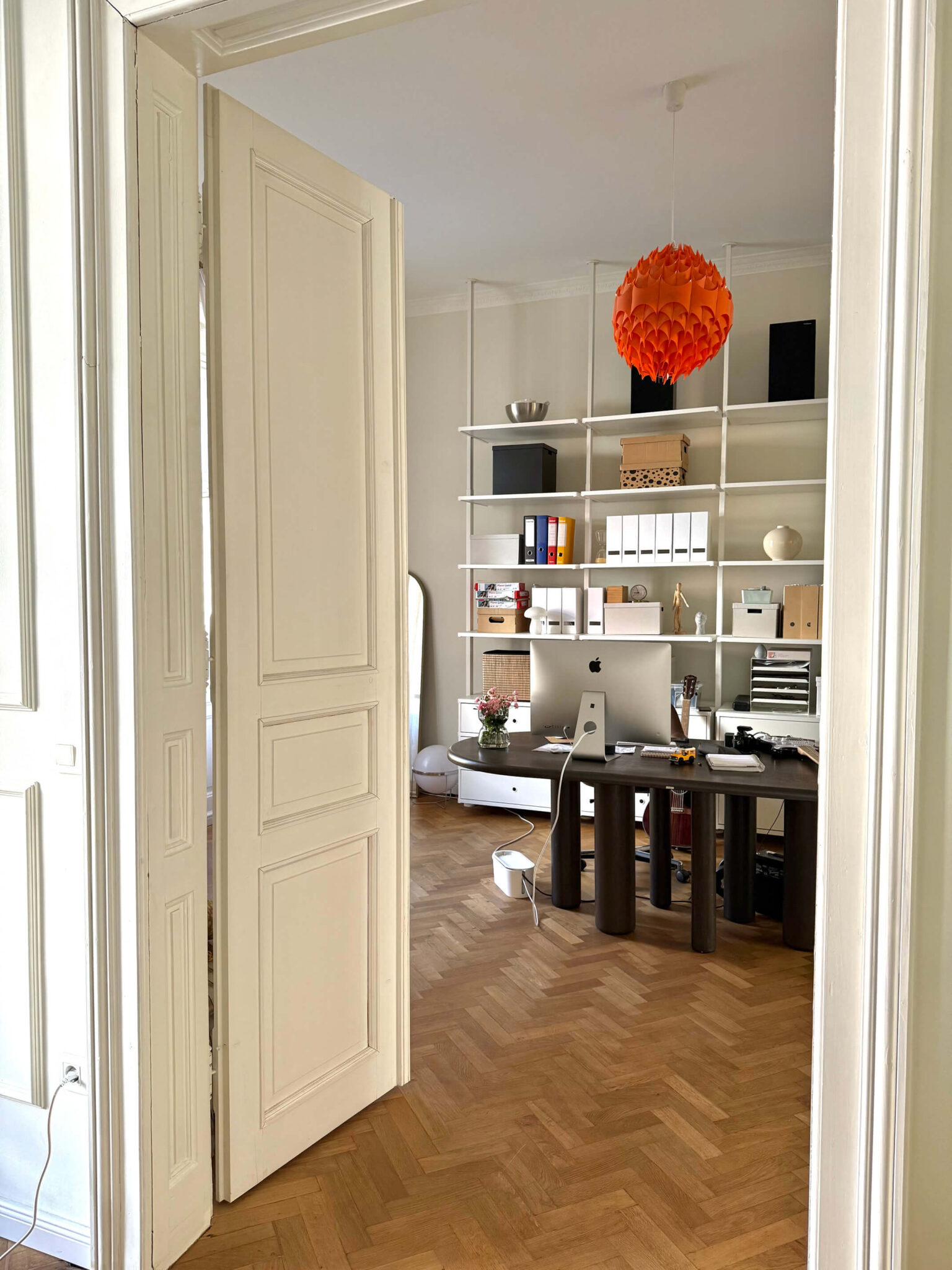 Stanovanje, ki nosi močen pečat stanovalcev, se je razvijalo z njima in onadva z njim. Njegova najbolj izstopajoča značilnost je bil originalni parket, ki sta se ga lotila najprej. Sama sta ga obnovila: zbrusila in znova polakirala. Prav želela sta, da še naprej škripa, tako kot je včasih. »Zdaj malo manj škripa, kot je sicer, ampak nama je všeč, da se ohranja ta kulturna dediščina,« razlaga Alja.