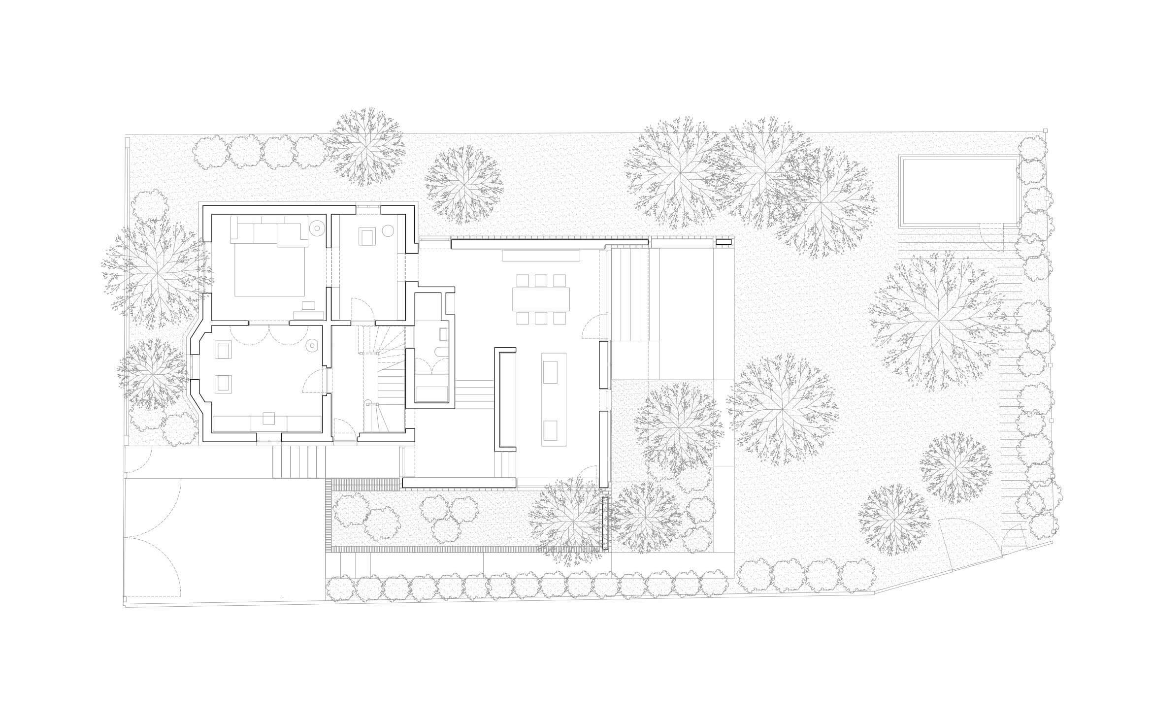 Ob začetku prenove bi bilo hišo mogoče porušiti in na parceli zgraditi nov objekt – a arhitekti iz ARP studio so v obstoječi stavbi prepoznali dovolj kakovostno konstrukcijo, primerno merilo in dobro umeščenost na parcelo, da so se odločili za ohranitev osnovnega volumna. Odstranjene so bile vse poznejše dozidave, ki so sčasoma zasedle severni del hiše in povsem onemogočile stik pritličja z vrtom.