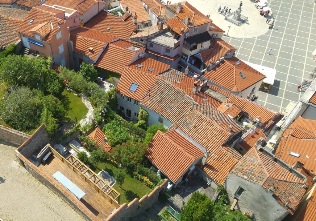 Tako kot je bil svojevrsten izziv urediti vrt na dveh hektarih, je bilo potrebnega veliko razmisleka in tudi napora, da je nastal terasasti vrt v Piranu. Vanj vstopimo z vrha in se zlagoma spuščamo po strmih stopnicah. Namesto, da bi lastniki na posamičnih terasah samo položili trato ali jih celo tlakovali, se povsod bohoti zelenje.